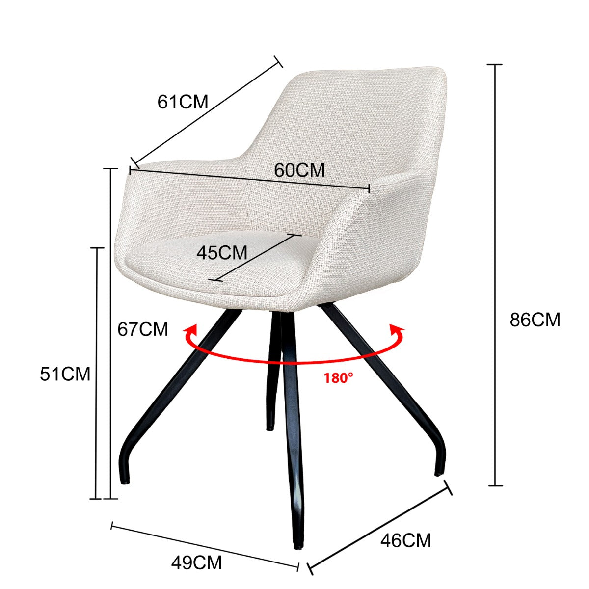 Met zijn subtiele en speelse uitstraling past de Livingfurn Duke Beige eetkamerstoel perfect in hedendaagse interieurstijlen. De combinatie van de geweven textuur van de stof en het strakke zwarte onderstel geeft de stoel een eigentijdse look die de aandacht trekt zonder te overheersen.