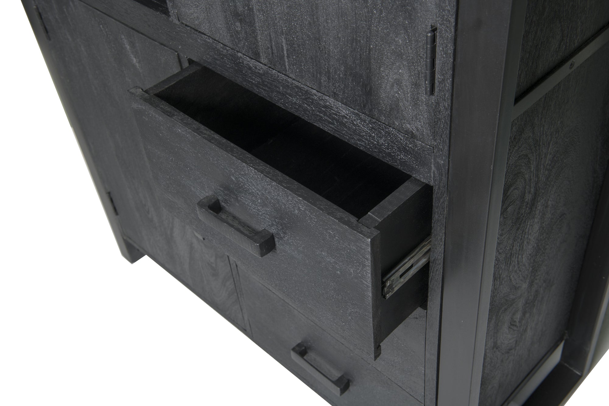 Livingfurn Norris kast is vervaardigd van hoogwaardige materialen die zorgen voor duurzaamheid en langdurig gebruik. Het zwart mangohout is niet alleen sterk en robuust, maar ook voorzien van een beschermende topafwerking die het hout beschermt tegen krassen en beschadigingen. Dit zorgt ervoor dat de kast er niet alleen elegant uitziet, maar ook bestand is tegen de dagelijkse slijtage.