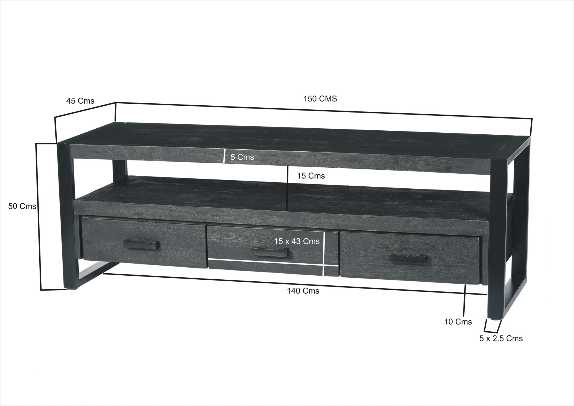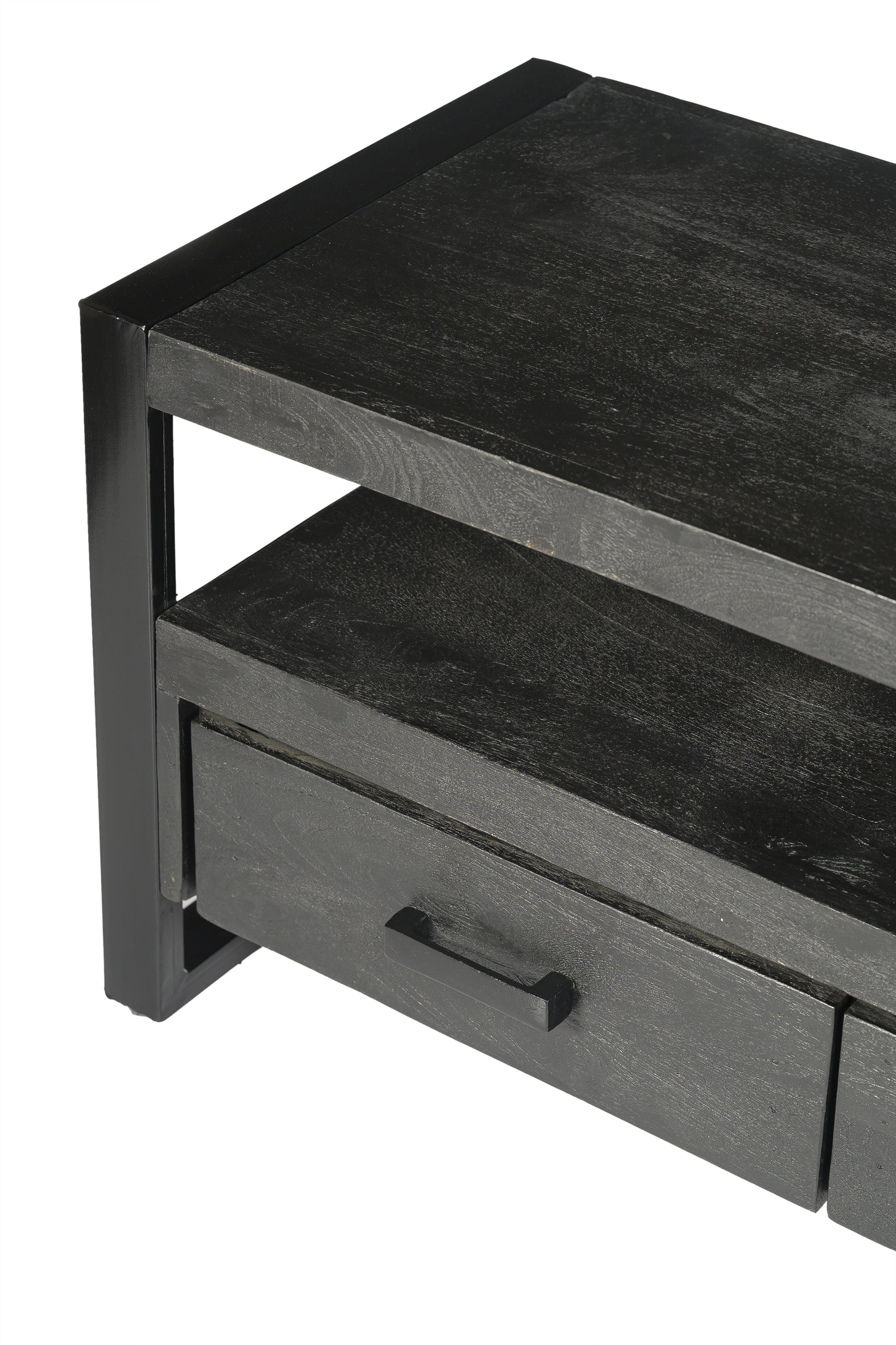 Het gebruik van zwart mangohout met een beschermende topafwerking zorgt niet alleen voor een eigentijdse uitstraling, maar garandeert ook duurzaamheid en kwaliteit. Het mangohout is van nature sterk en robuust, waardoor het bestand is tegen dagelijks gebruik en langdurige belasting. Bovendien beschermt de topafwerking het hout tegen krassen, vlekken en andere beschadigingen, waardoor het tv-meubel er jarenlang als nieuw blijft uitzien.