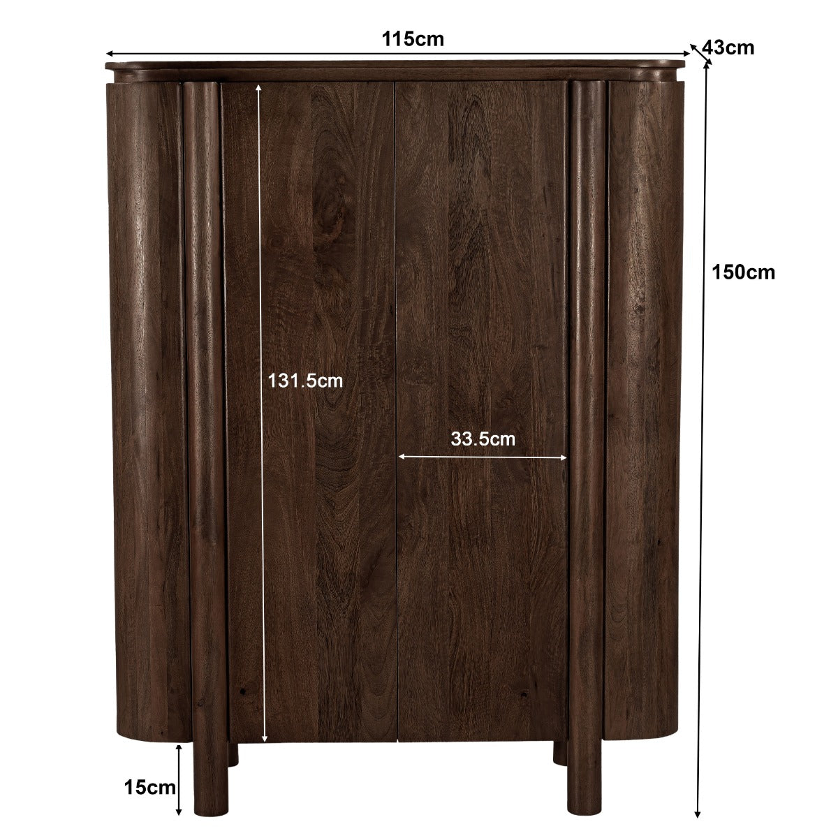 De diepe bruine kleur geeft de kast een elegante en warme uitstraling. Deze afwerking zorgt ervoor dat de kast naadloos aansluit bij diverse interieurstijlen, van modern en industrieel tot klassiek en landelijk.