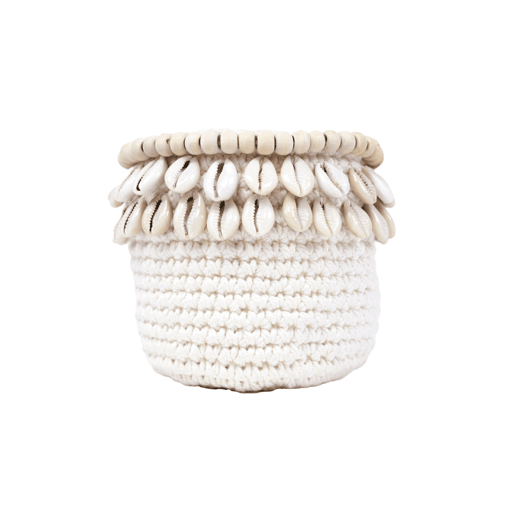 Simpele (planten) potjes en vazen een nieuw leven in blazen met dit bohemian schelpenmandje. Ook te gebruiken als opbergmandjes. Schelpenmandje schelpen is ideaal voor op een tafel, dressoir of vensterbank en is daarom geschikt voor meerdere vlakke ruimtes bij jou in huis. Het decoratieartikel past uitstekend in een natuurlijk, landelijk, bohemian, botanical of Ibiza-interieur.
