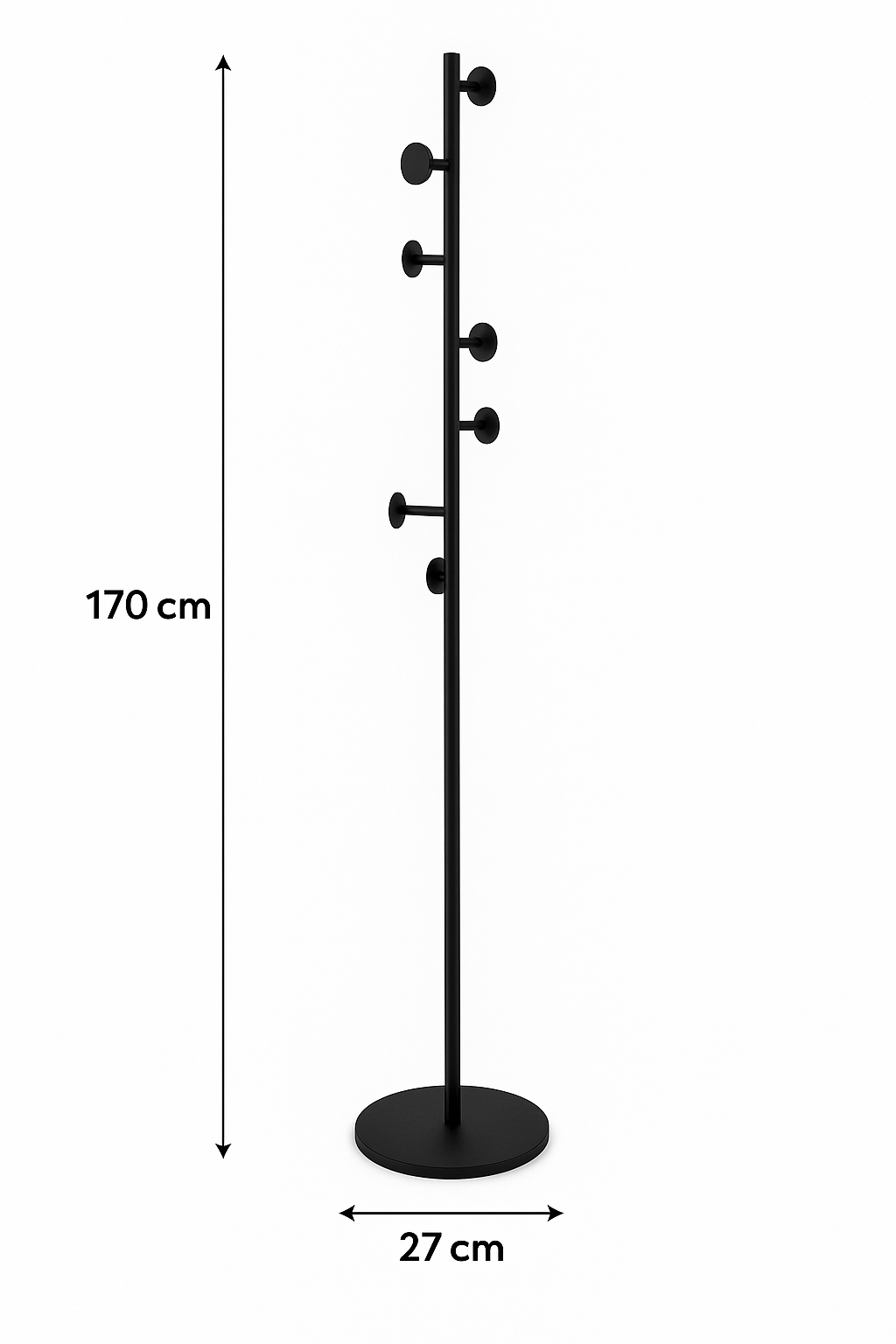 Breng elegantie en functionaliteit samen in jouw interieur met deze moderne zwarte staande kapstok. Het slanke ontwerp en de matte zwarte afwerking maken dit pronkstuk perfect voor een Scandinavisch, Japandi of industrieel interieur. Dankzij de zeven stevige haken biedt hij genoeg ruimte voor jassen, tassen, sjaals of hoeden, zonder dat hij veel plek inneemt.