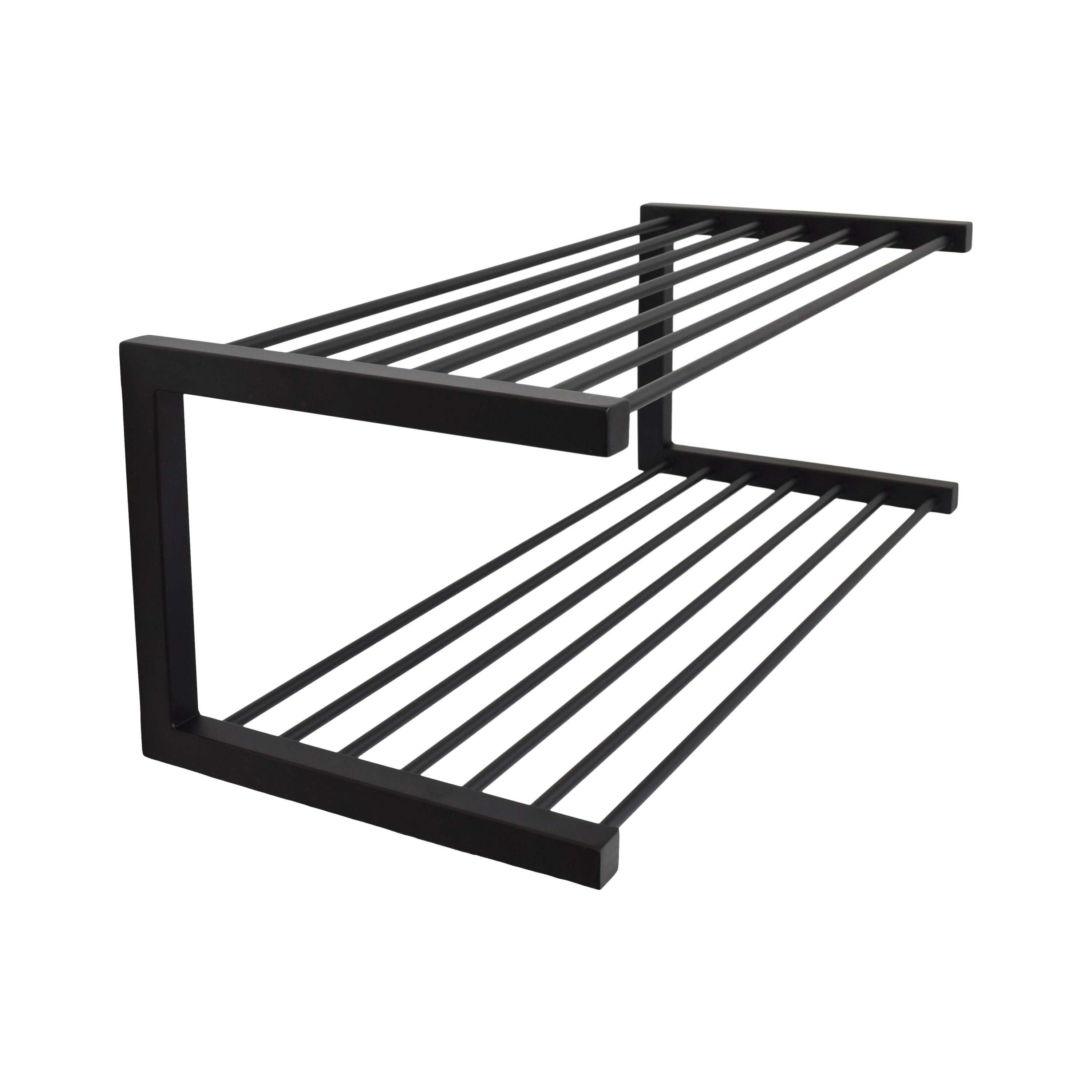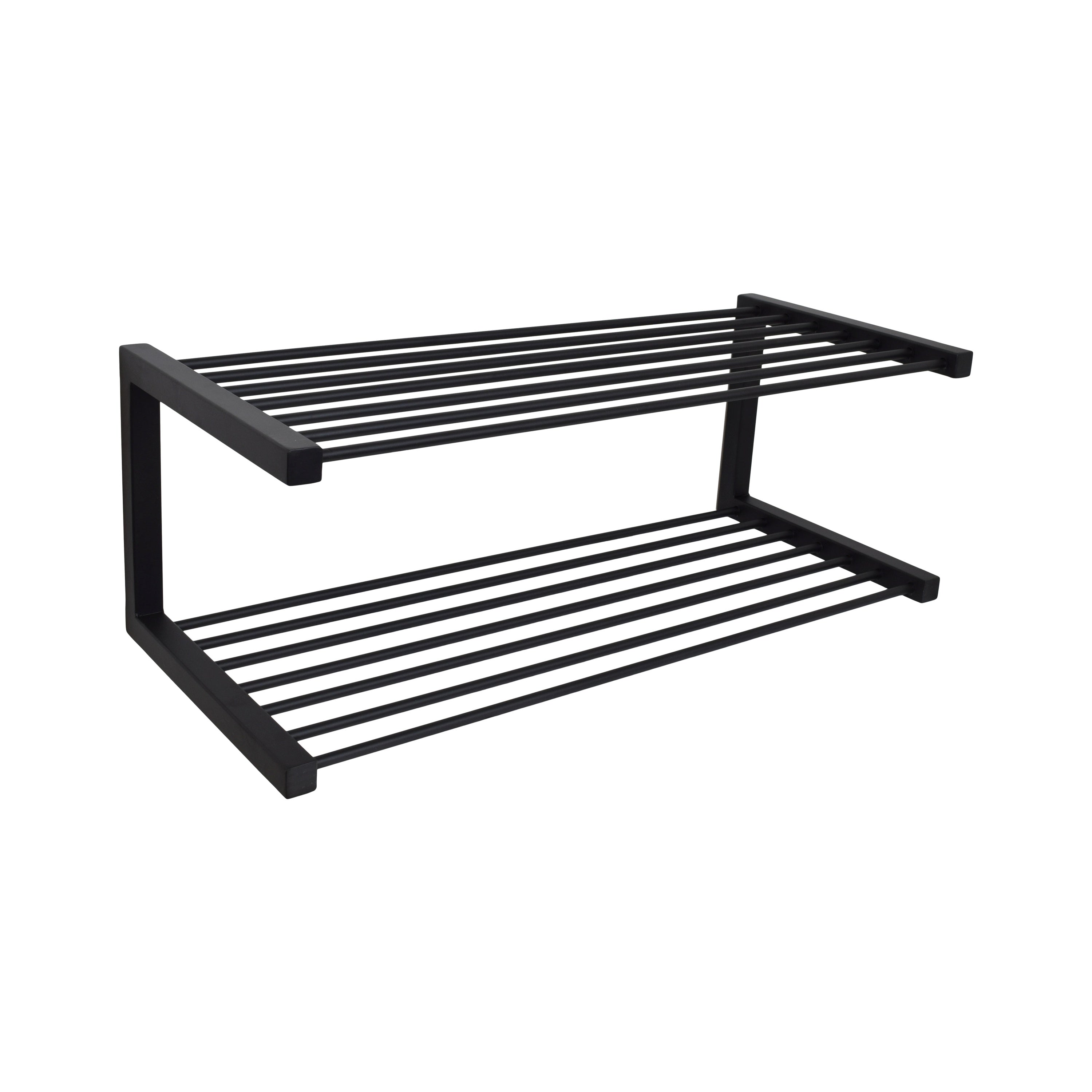 LOFT42 Hall wand schoenenrek. Een dubbel schoenenrek van hoogwaardig metaal met een matzwarte poedercoating.