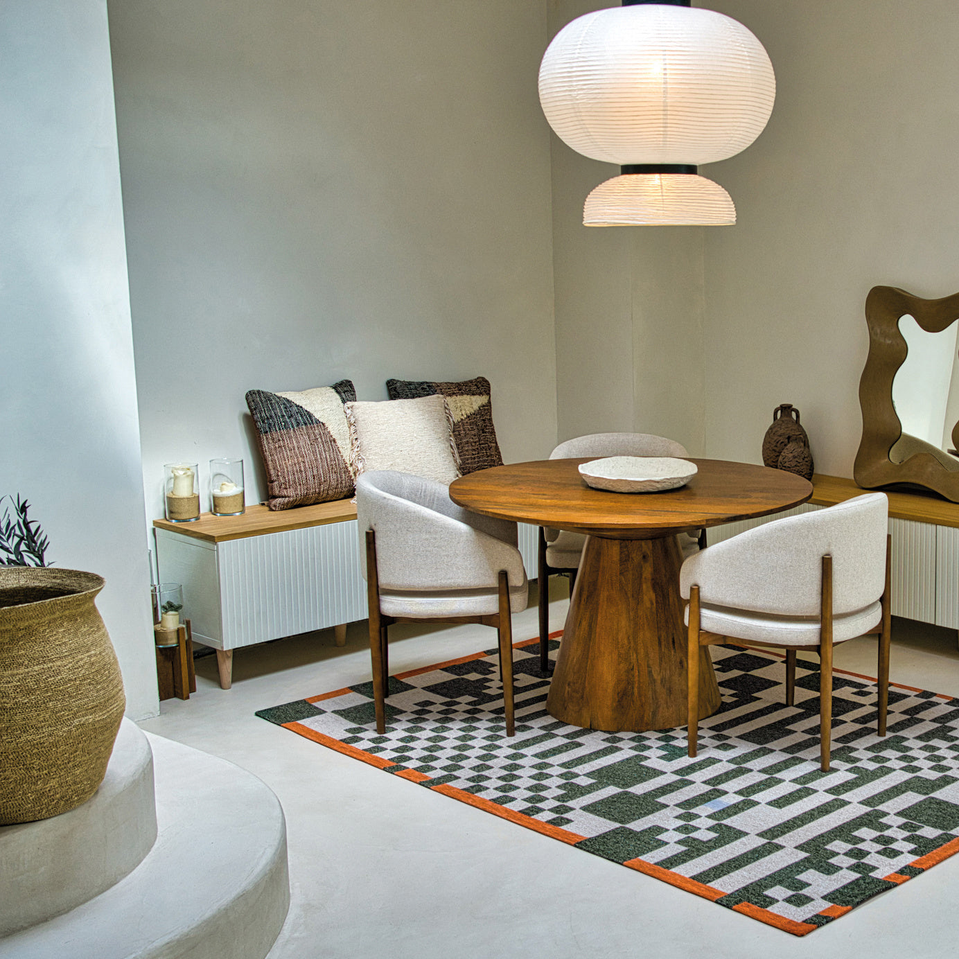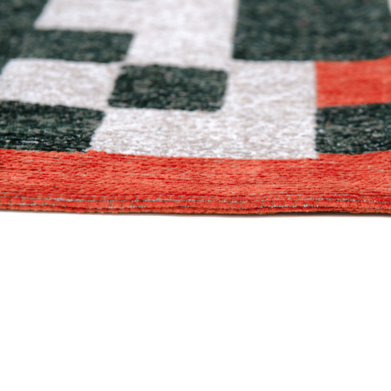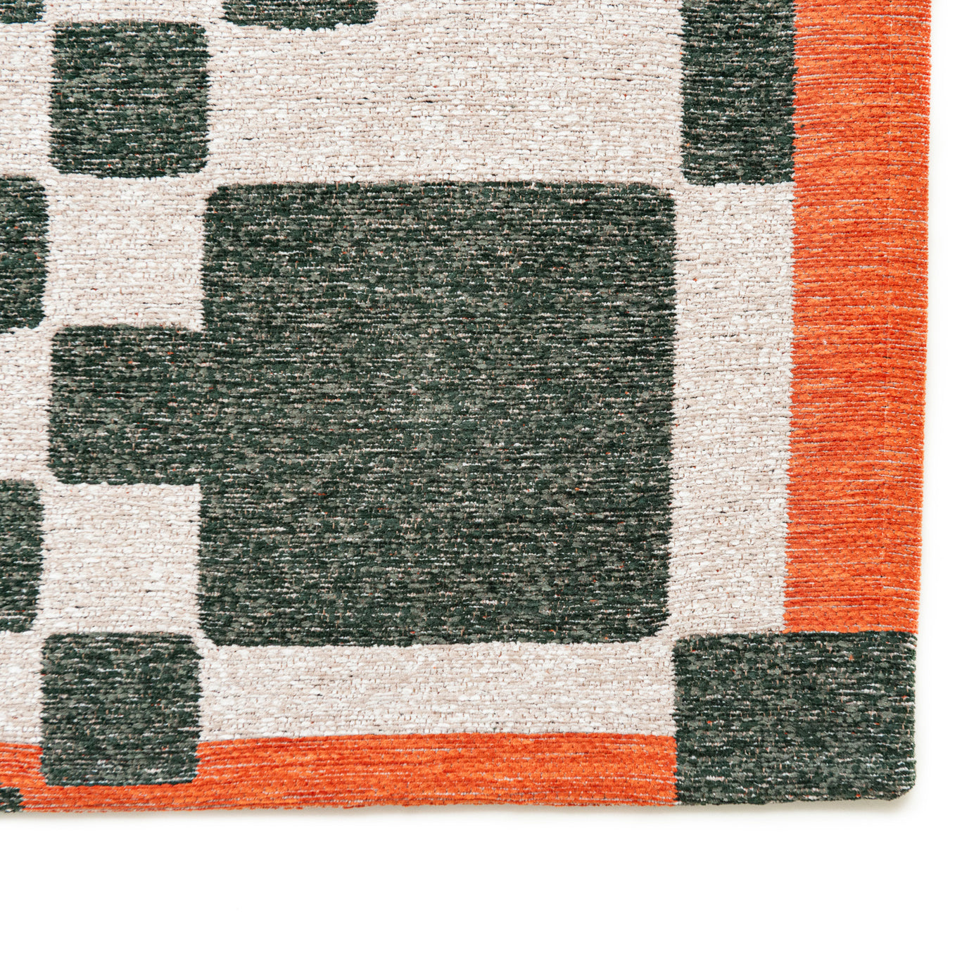 Het Chess-tapijt is een gedecomponeerde interpretatie van het iconische schaakbordpatroon. Met een gedurfde grafische esthetiek bereikt dit tapijt de perfecte balans tussen de wanorde van het patroon en de harmonie van de kleuren. Het schaakbord is ongestructureerd, wat een intrigerende esthetiek creëert die de aandacht trekt. Bovendien zijn subtiele materiaaleffecten geïntegreerd in het schaakbord, wat een tastbare dimensie en een gevoel van diepte aan het geheel toevoegt. De felgekleurde contouren zijn puur en gedefinieerd, wat visuele helderheid aan het patroon geeft en tegelijkertijd een opvallende energie aan het ontwerp toevoegt.