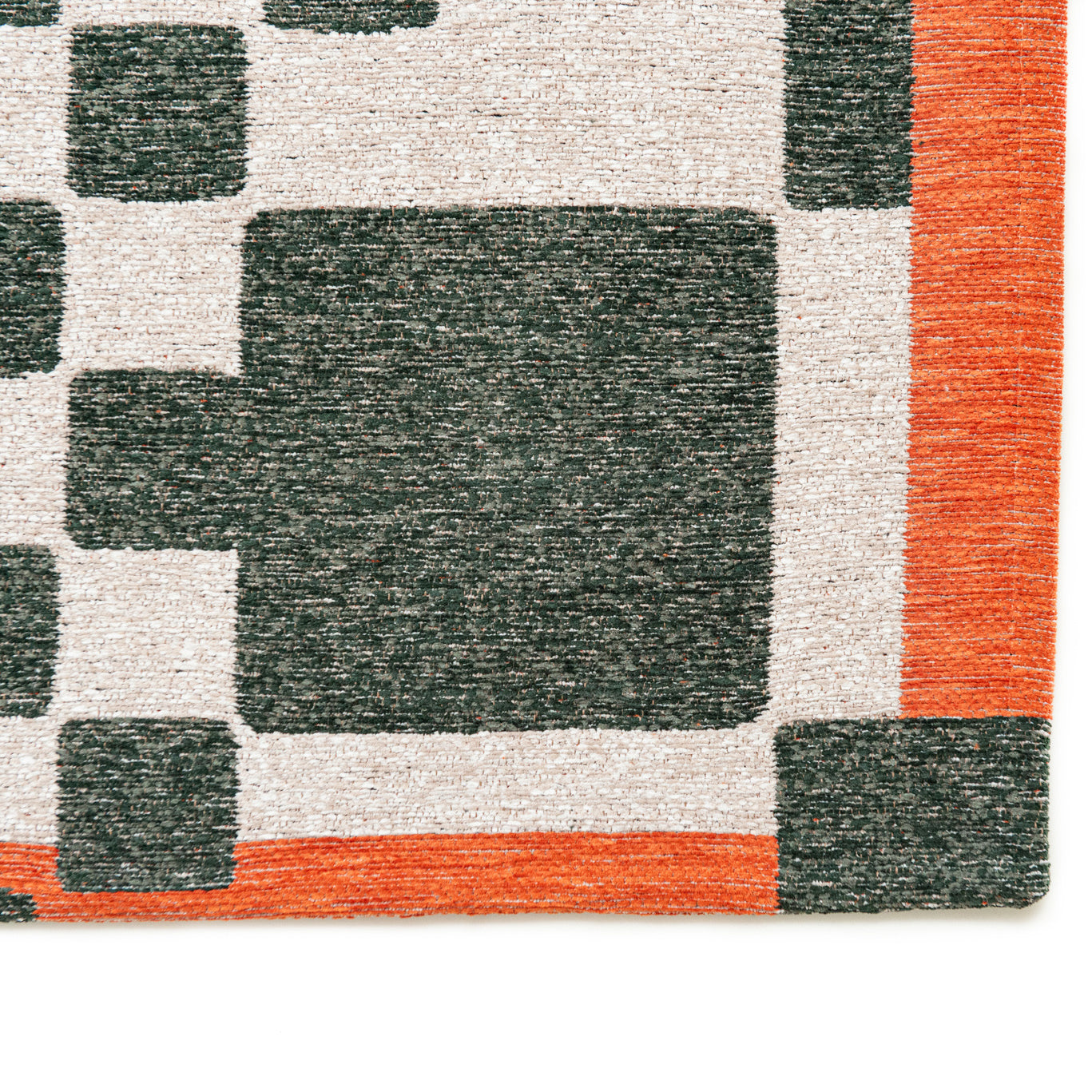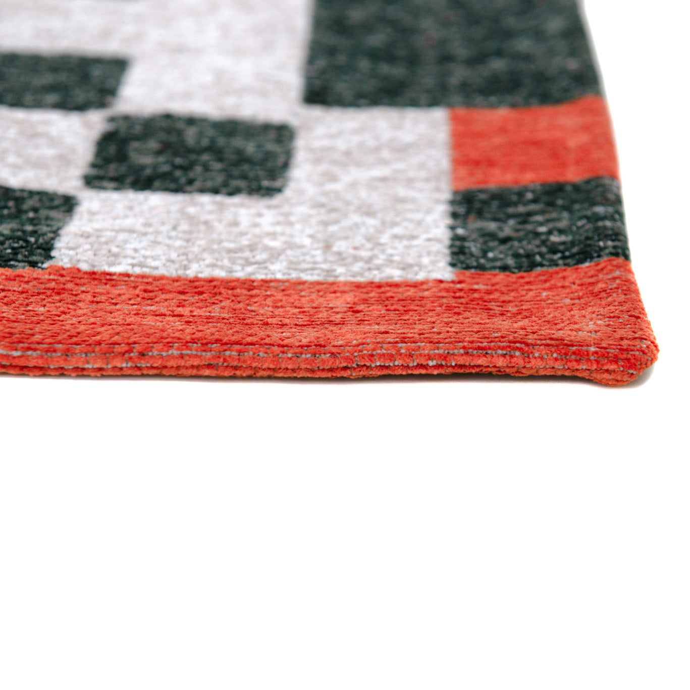 Het Chess-tapijt is een gedecomponeerde interpretatie van het iconische schaakbordpatroon. Met een gedurfde grafische esthetiek bereikt dit tapijt de perfecte balans tussen de wanorde van het patroon en de harmonie van de kleuren. Het schaakbord is ongestructureerd, wat een intrigerende esthetiek creëert die de aandacht trekt. Bovendien zijn subtiele materiaaleffecten geïntegreerd in het schaakbord, wat een tastbare dimensie en een gevoel van diepte aan het geheel toevoegt. De felgekleurde contouren zijn puur en gedefinieerd, wat visuele helderheid aan het patroon geeft en tegelijkertijd een opvallende energie aan het ontwerp toevoegt.