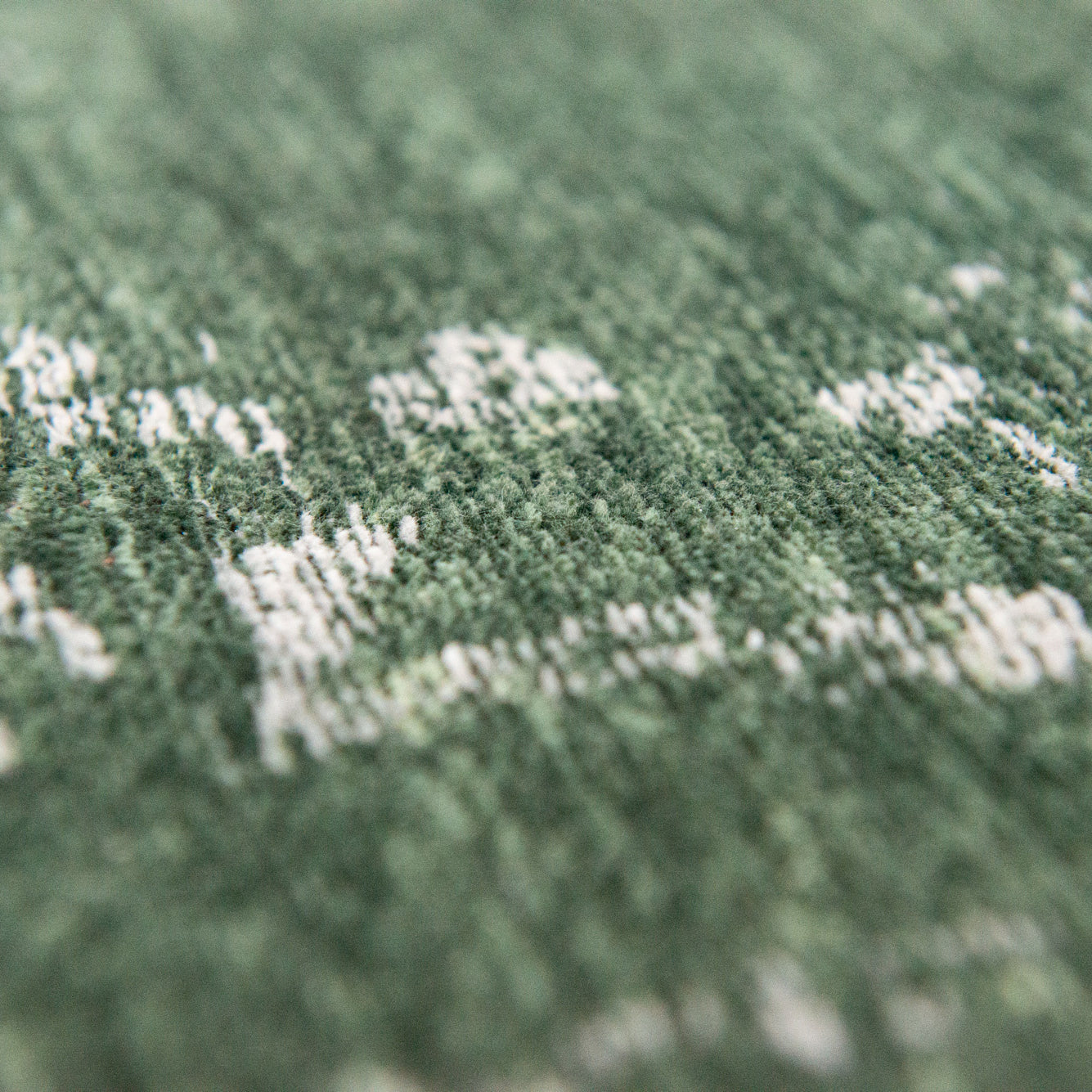 Het centrale motief stamt uit een grote traditie. Door de eeuwen heen werden de tekeningen rond het centrale medallion opgebouwd. Talloze weefeffecten geven een indruk van slijtage en vervagende kleuren en motieven. Het lijkt wel alsof de geschiedenis in het tapijt verweven is. Verrassende en levendige kleuraccenten brengen toch een vernieuwende touch. De vloerkleden zijn met groot vakmanschap in Belgique gemaakt. Ze zijn geweven met optische sporen van naden en slijtage. Onze karpetten hebben versterkte hoeken en zijn met de hand afgewerkt. Een antisliplaag verzekert de stabiliteit op harde vloeren. De constructie is slechts 3 mm dik en daardoor gemakkelijk te hanteren. Het materiaal is een mengeling van zijdezachte katoenchenille en zuivere scheerwol.