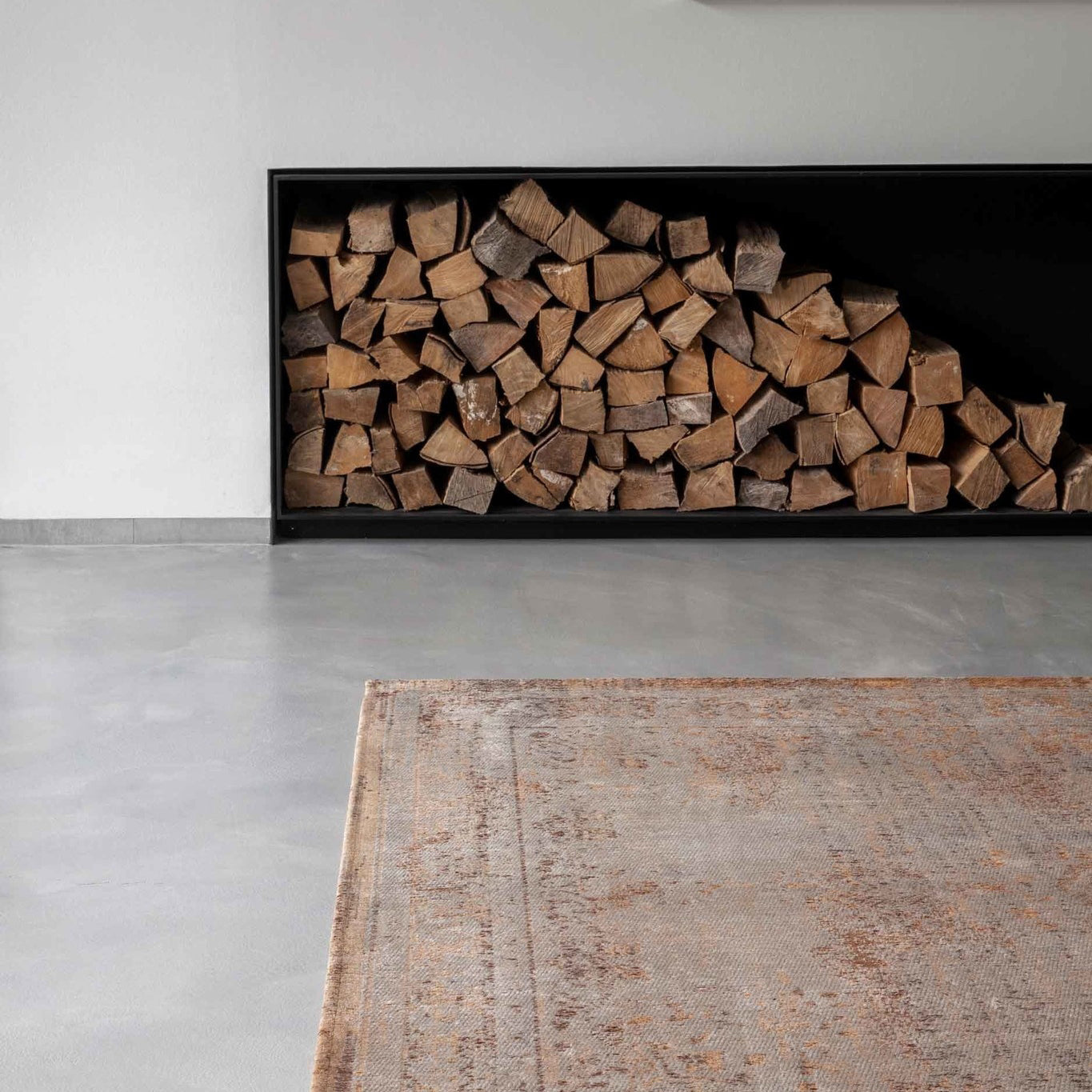 Het centrale motief stamt uit een grote traditie. Door de eeuwen heen werden de tekeningen rond het centrale medallion opgebouwd. Talloze weefeffecten geven een indruk van slijtage en vervagende kleuren en motieven. Het lijkt wel alsof de geschiedenis in het tapijt verweven is. Verrassende en levendige kleuraccenten brengen toch een vernieuwende touch. De vloerkleden zijn met groot vakmanschap in Belgique gemaakt. Ze zijn geweven met optische sporen van naden en slijtage. Onze karpetten hebben versterkte hoeken en zijn met de hand afgewerkt. Een antisliplaag verzekert de stabiliteit op harde vloeren. De constructie is slechts 3 mm dik en daardoor gemakkelijk te hanteren. Het materiaal is een mengeling van zijdezachte katoenchenille en zuivere scheerwol.