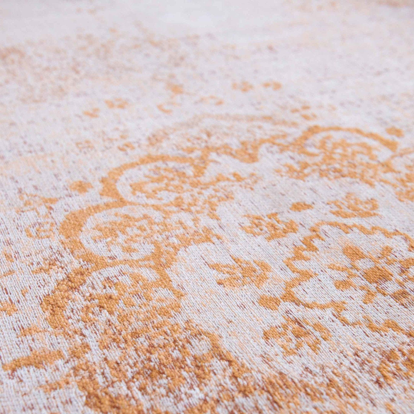 Het centrale motief stamt uit een grote traditie. Door de eeuwen heen werden de tekeningen rond het centrale medallion opgebouwd. Talloze weefeffecten geven een indruk van slijtage en vervagende kleuren en motieven. Het lijkt wel alsof de geschiedenis in het tapijt verweven is. Verrassende en levendige kleuraccenten brengen toch een vernieuwende touch. De vloerkleden zijn met groot vakmanschap in Belgique gemaakt. Ze zijn geweven met optische sporen van naden en slijtage. Onze karpetten hebben versterkte hoeken en zijn met de hand afgewerkt. Een antisliplaag verzekert de stabiliteit op harde vloeren. De constructie is slechts 3 mm dik en daardoor gemakkelijk te hanteren. Het materiaal is een mengeling van zijdezachte katoenchenille en zuivere scheerwol.