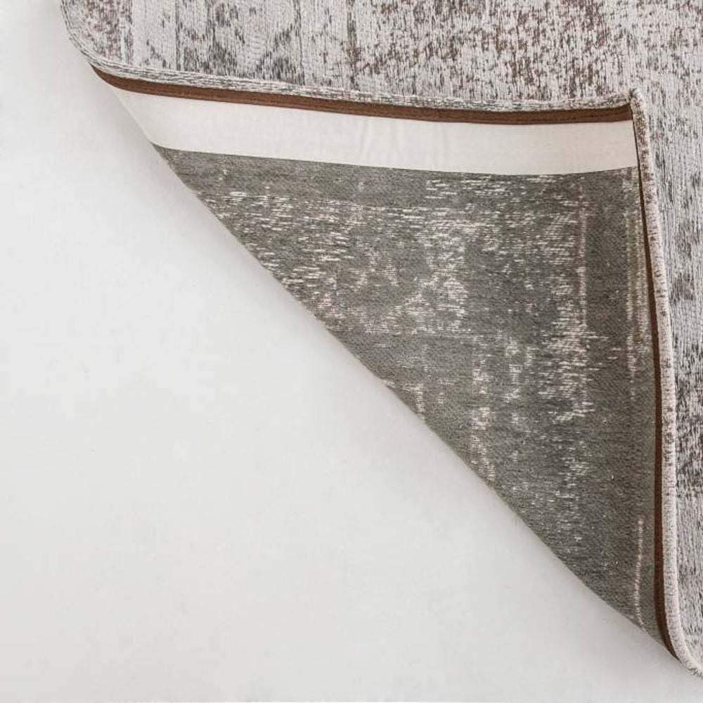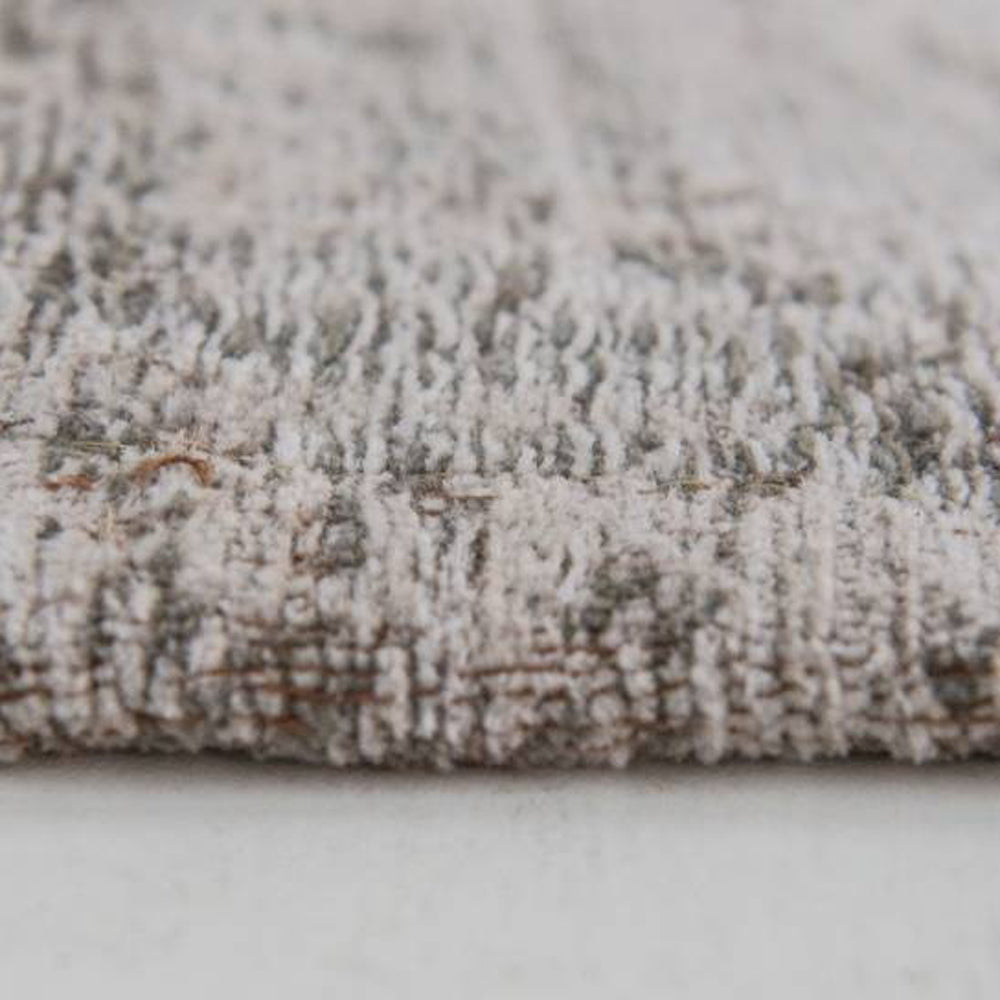 Het centrale motief stamt uit een grote traditie. Door de eeuwen heen werden de tekeningen rond het centrale medallion opgebouwd. Talloze weefeffecten geven een indruk van slijtage en vervagende kleuren en motieven. Het lijkt wel alsof de geschiedenis in het tapijt verweven is. Verrassende en levendige kleuraccenten brengen toch een vernieuwende touch. De vloerkleden zijn met groot vakmanschap in Belgique gemaakt. Ze zijn geweven met optische sporen van naden en slijtage. Onze karpetten hebben versterkte hoeken en zijn met de hand afgewerkt. Een antisliplaag verzekert de stabiliteit op harde vloeren. De constructie is slechts 3 mm dik en daardoor gemakkelijk te hanteren. Het materiaal is een mengeling van zijdezachte katoenchenille en zuivere scheerwol.