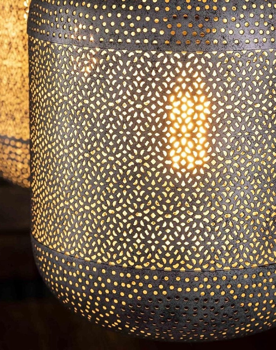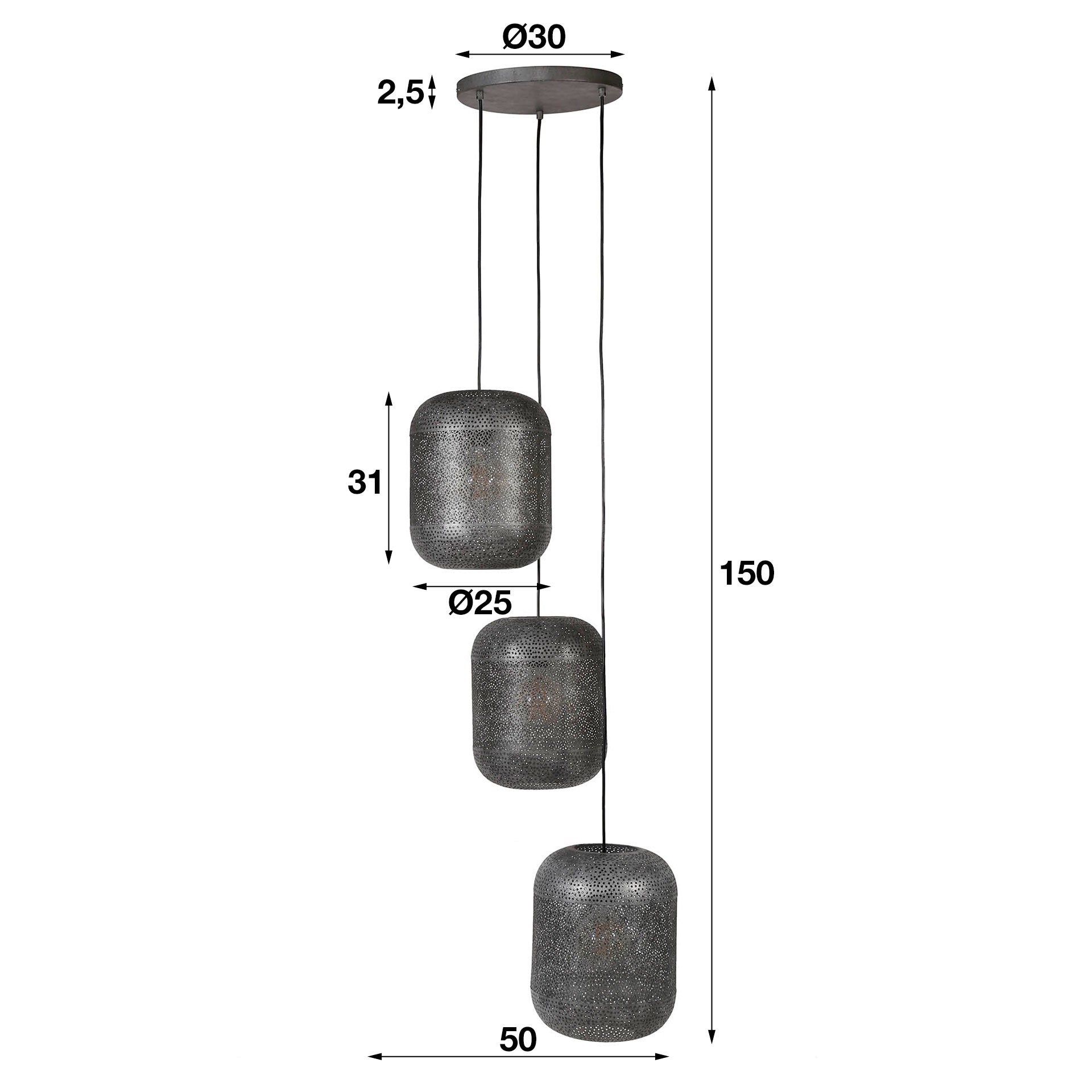 Doordat de lampenkappen zijn bewerkt met kleine gaatjes zie je een sfeervol patroon in de lampenkappen die zorgen voor rust en gezelligheid. De plafondplaat is 30 centimeter doorsnee en dekt mooi de centraaldoos in het plafond af. De 3 lampenkappen zijn afzonderlijk van elkaar in hoogte te stellen zodat je altijd het licht op de juiste plek hebt.