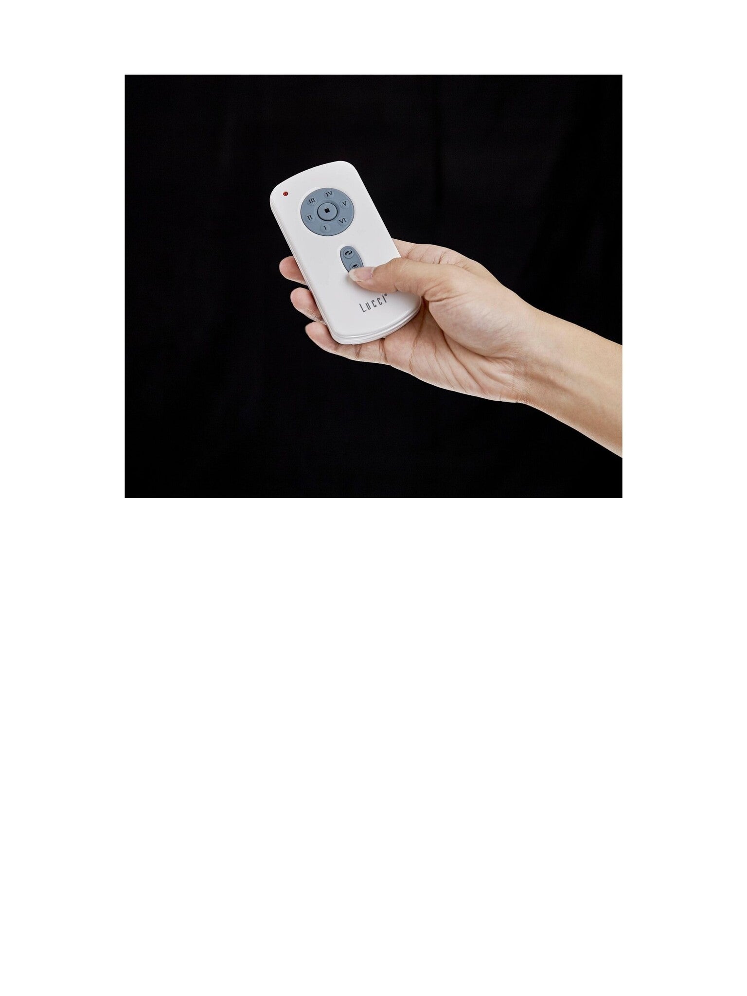 AFSTANDSBEDIENING: De ventilator wordt aangestuurd via een 6-traps afstandsbediening met omkeerfunctie. De lamp, die nog achteraf kan worden aangebracht, kan ook onafhankelijk van de ventilatorwerking worden aangestuurd.