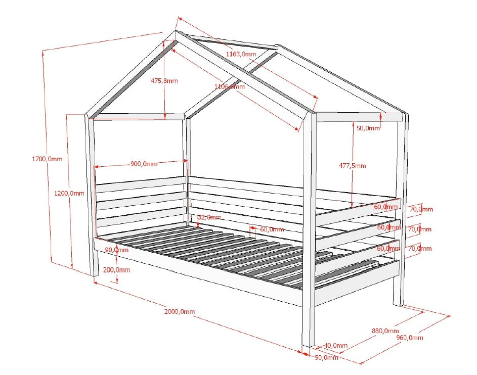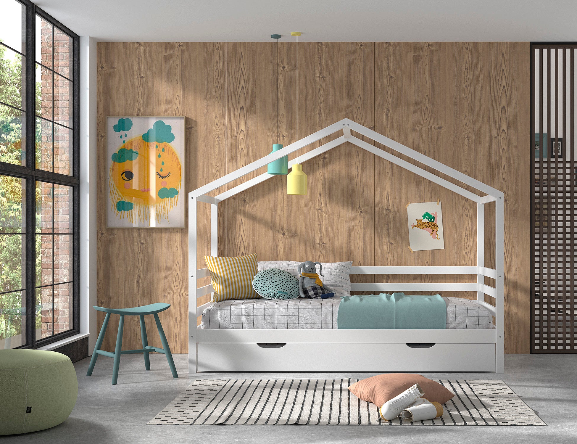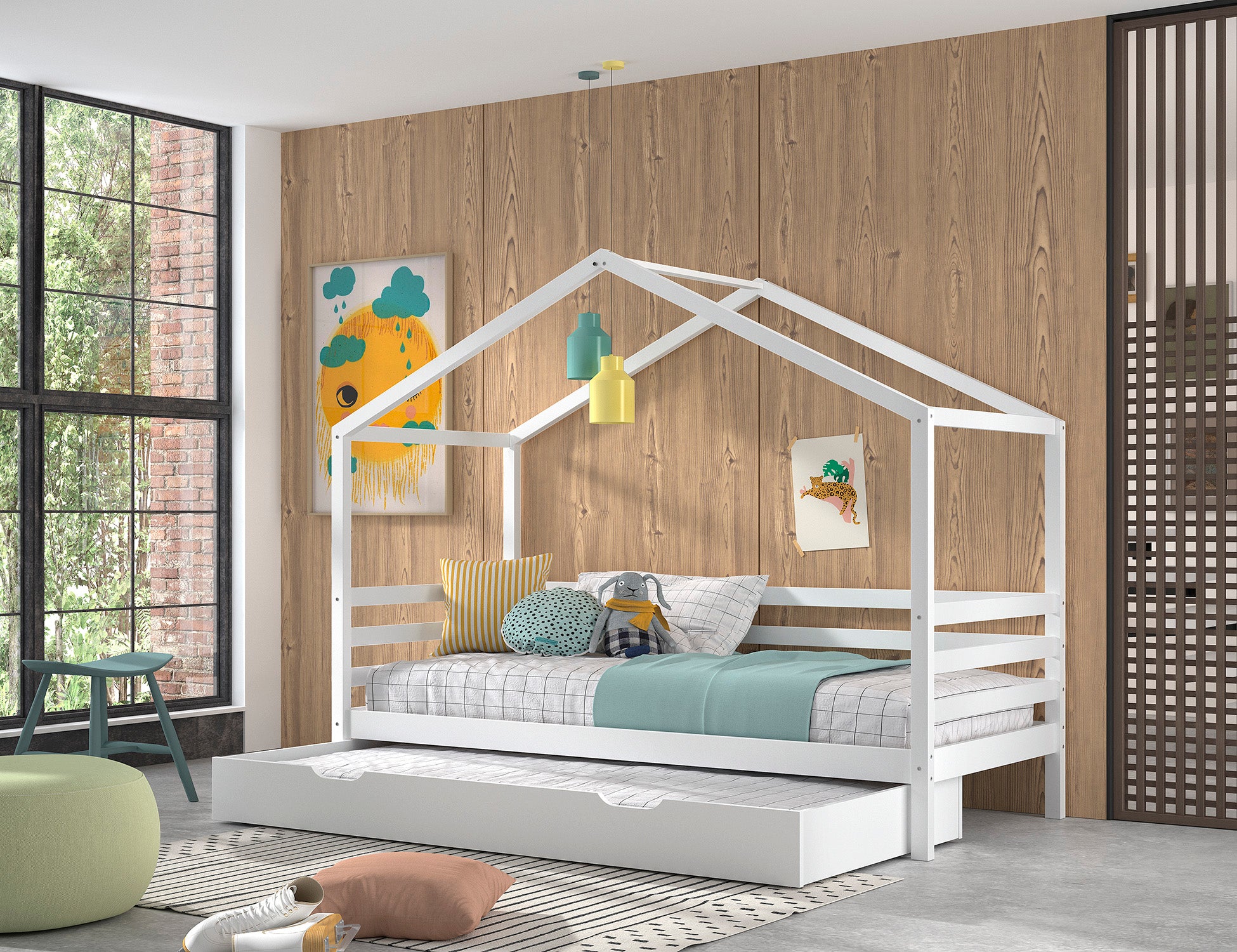 Dit moderne huisbed combineert functionaliteit en esthetiek. Met een ligoppervlak van 90 x 200 cm biedt het voldoende ruimte om comfortabel te slapen. De zijrand zorgt voor extra veiligheid, terwijl de inbegrepen dakconstructie een speelse karakter toevoegt. Dit bed wordt verkocht in combinatie met een rolbed. Ontdek de belangrijkste kenmerken van dit product in onderstaande punten: