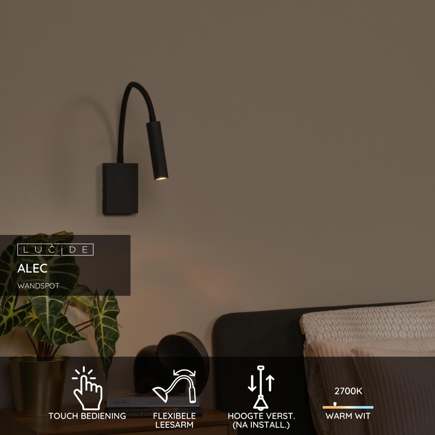 Lucide ALEC Wandspot - Zwart