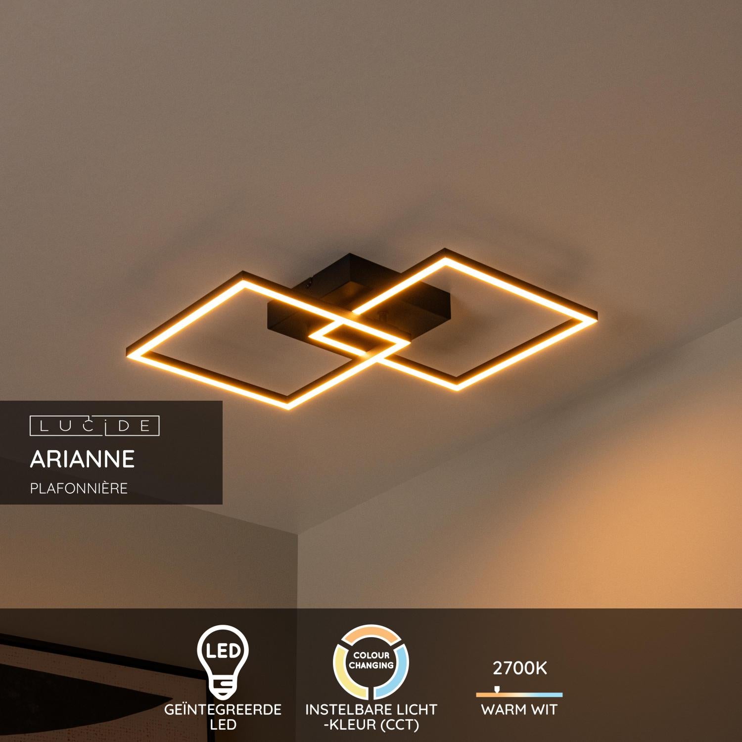 Lucide ARIANNE - Plafonnière - LED - CCT - 1x23W 2700K/4000K - Zwart