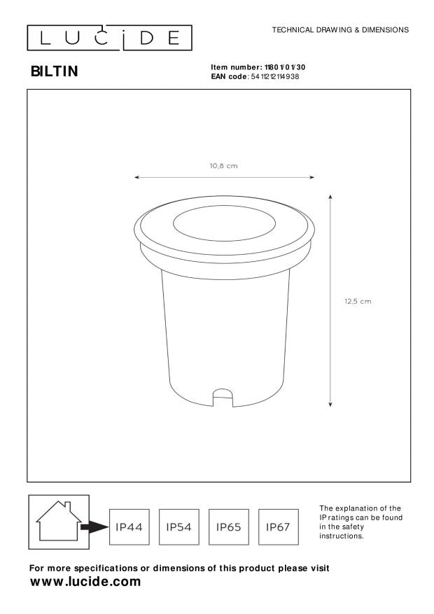 Een grondspot om te integreren in je terras, langs je oprit, of zelfs als begeleidingsverlichting richting het tuinhuis. Deze cirkelvormige grondspot van Lucide leent zich voor heel wat toepassingen. Dankzij de bescheiden afmetingen is de buitenverlichting makkelijk en veelzijdig te installeren. De afwerking in hoogwaardig aluminium verzekert je van een eigentijdse en tijdloze look, én vooral van heel wat duurzaamheid. Deze moderne grondspot is geschikt voor led-verlichting en kan ook makkelijk op een dimmer aangesloten worden. Unieke productkenmerken: • Geschikt voor toepassing met LED lichtbron • Eenvoudig aan te sluiten op een dimmer (excl.) • Vervaardigd uit hoogwaardig aluminium Belangrijke productkenmerken: • Speciaal ontworpen voor langdurig en betrouwbaar buitengebruik (Conform IP67) • Verbruik: 1x35W / 230V / Dimbaar (lichtbron niet inbegrepen) • Afmetingen: 10,4 cm (inbouwdiameter) x 12,5 cm (inbouwdiepte) • 2 Jaar garantie op het armatuur / Passende lichtbron is EAN: 5411212490643 Waarom kiezen voor Lucide verlichting? Lucide staat voor trendsettend design, vakmanschap en betrouwbaarheid. Als Belgisch familiebedrijf met ruim drie decennia aan expertise ontwerpen wij hoogwaardige verlichting die elke ruimte – binnen én buiten – verrijkt en transformeert. Onze veelzijdige collectie omvat duurzame armaturen en energiezuinige lichtbronnen, zorgvuldig ontworpen door onze eigen experts en geproduceerd volgens de strengste CE-normen. Met ons uitgebreide assortiment bieden we jou altijd een geschikte lichtoplossing, ongeacht stijl of ruimte. Zo verlichten we niet enkel jouw leefruimte maar ook jouw keuzeproces in de zoektocht naar kwalitatieve betaalbare verlichting. Bij Lucide combineren we innovatie met vakmanschap, voor verlichting die niet alleen sfeer toevoegt, maar van ieder huis een thuis maakt.