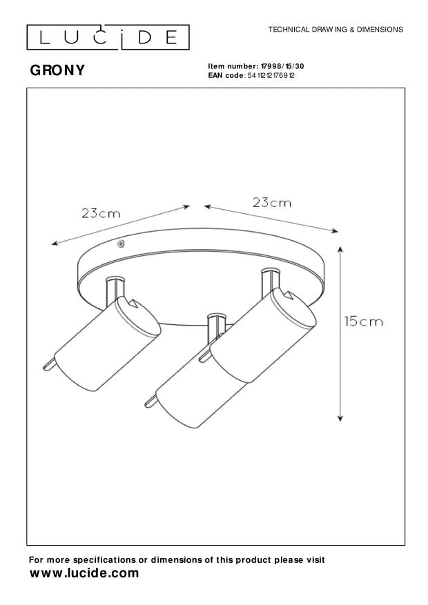 Deze plafondspot met drie lichtpunten lijken eenvoudige zwarte spots op een armatuur te zijn. Maar Grony bezit subtiele kleuraccenten die hem net dat tikkeltje extra geven. Het gouden plaatje is bovendien ook functioneel, daarmee draai en kantel je de lichtbronnen meteen in de juiste richting. Grony voelt zich het meeste thuis in moderne interieurs, maar vindt zijn draai ook in een landelijke stijl. Deze spot beschikt over drie bijgeleverde lichtbronnen die uitgerust zijn met het dim-to-warmprincipe waarmee je je lichtsterkte regelt van 2200 tot 3000k. Je kan Grony bovendien ook aansluiten op een dimmer. Unieke productkenmerken: • Geleverd inclusief dimbare lichtbronnen • Dim to warm, dimt naar warmere kleurtemperatuur (2200K-3000K) • Deze lamp is draaibaar en kantelbaar • Eenvoudig aan te sluiten op een dimmer (excl.) • Vervaardigd uit hoogwaardig metaal Belangrijke productkenmerken: • Verbruik: 3x5W / 230V / Dimbaar (Lichtbronnen inbegrepen) • Afmetingen: L.23 x B.23 x H.15 cm • 2 Jaar garantie op het armatuur Waarom kiezen voor Lucide verlichting? Lucide staat voor trendsettend design, vakmanschap en betrouwbaarheid. Als Belgisch familiebedrijf met ruim drie decennia aan expertise ontwerpen wij hoogwaardige verlichting die elke ruimte – binnen én buiten – verrijkt en transformeert. Onze veelzijdige collectie omvat duurzame armaturen en energiezuinige lichtbronnen, zorgvuldig ontworpen door onze eigen experts en geproduceerd volgens de strengste CE-normen. Met ons uitgebreide assortiment bieden we jou altijd een geschikte lichtoplossing, ongeacht stijl of ruimte. Zo verlichten we niet enkel jouw leefruimte maar ook jouw keuzeproces in de zoektocht naar kwalitatieve betaalbare verlichting. Bij Lucide combineren we innovatie met vakmanschap, voor verlichting die niet alleen sfeer toevoegt, maar van ieder huis een thuis maakt.