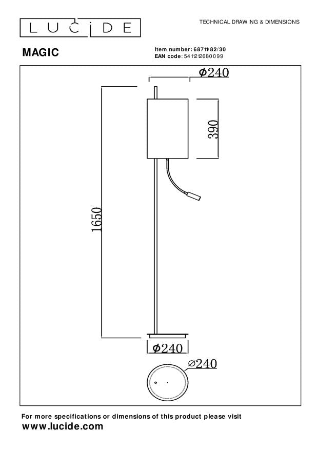 Creëer een feërieke sfeer in huis met Magic. Deze praktische staande lamp heeft een stijlvolle linnen lampkamp waar een gedempte, warme gloed doorheen schijnt. Dit indirecte licht komt uitstekend tot zijn recht in de woonkamer, als subtiele lichtbron in de leeshoek of als zachte nachtverlichting in de slaapkamer. En weet je wat pas echt wonderlijk is? Naast de elegante lampenkap heeft Macig ook flexibele leesarm met een compacte, richtbare spot. Die richt je als een toverstraal bewust naar je gewenste doel. Let the Magic do the talking. Unieke productkenmerken: • Geschikt voor toepassing met LED lichtbron • Deze lamp is uitgerust met een flexibele leesarm • Bedienbaar via aan/uit schakelaar in het snoer • Vervaardigd uit hoogwaardig metaal Belangrijke productkenmerken: • Verbruik: 1x40W / 230V / (lichtbron niet inbegrepen) • Afmetingen: Ø24 cm \ H.165 cm • 3 Jaar garantie op het armatuur / Passende lichtbron is EAN: 5411212491404 Waarom kiezen voor Lucide verlichting? Lucide staat voor trendsettend design, vakmanschap en betrouwbaarheid. Als Belgisch familiebedrijf met ruim drie decennia aan expertise ontwerpen wij hoogwaardige verlichting die elke ruimte – binnen én buiten – verrijkt en transformeert. Onze veelzijdige collectie omvat duurzame armaturen en energiezuinige lichtbronnen, zorgvuldig ontworpen door onze eigen experts en geproduceerd volgens de strengste CE-normen. Met ons uitgebreide assortiment bieden we jou altijd een geschikte lichtoplossing, ongeacht stijl of ruimte. Zo verlichten we niet enkel jouw leefruimte maar ook jouw keuzeproces in de zoektocht naar kwalitatieve betaalbare verlichting. Bij Lucide combineren we innovatie met vakmanschap, voor verlichting die niet alleen sfeer toevoegt, maar van ieder huis een thuis maakt.