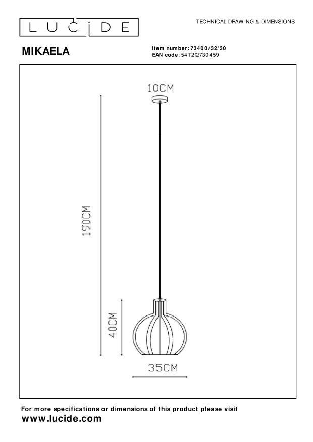Pendelverlichting ziet er altijd fraai uit. Met Mikaela is dat niet anders. De lichtbron is omgeven door een fijne, luchtige kap met precies ontworpen metalen stroken. Mikaela is goed beschermd en dat zorgt voor een langere levensduur. Dankzij de E27-fitting geeft deze pendellamp altijd het beste van zichzelf. In de hoogte meet Mikaela maximum 195 centimeter en met zijn unieke stijl past hij overal naadloos in. Van een moderne woning tot een kunstgalerij. Mikaela is ook geschikt voor led-verlichting om energiezuinig te verlichten. Unieke productkenmerken: • Geschikt voor toepassing met LED lichtbron • Deze lamp is in hoogte verstelbaar • Eenvoudig aan te sluiten op een dimmer (excl.) • Vervaardigd uit hoogwaardig metaal Belangrijke productkenmerken: • Verbruik: 1x60W / 230V / Dimbaar (lichtbron niet inbegrepen) • Afmetingen: Ø35 cm \ H.190 cm • 2 Jaar garantie op het armatuur / Passende lichtbron is EAN: 5411212491046 Waarom kiezen voor Lucide verlichting? Lucide staat voor trendsettend design, vakmanschap en betrouwbaarheid. Als Belgisch familiebedrijf met ruim drie decennia aan expertise ontwerpen wij hoogwaardige verlichting die elke ruimte – binnen én buiten – verrijkt en transformeert. Onze veelzijdige collectie omvat duurzame armaturen en energiezuinige lichtbronnen, zorgvuldig ontworpen door onze eigen experts en geproduceerd volgens de strengste CE-normen. Met ons uitgebreide assortiment bieden we jou altijd een geschikte lichtoplossing, ongeacht stijl of ruimte. Zo verlichten we niet enkel jouw leefruimte maar ook jouw keuzeproces in de zoektocht naar kwalitatieve betaalbare verlichting. Bij Lucide combineren we innovatie met vakmanschap, voor verlichting die niet alleen sfeer toevoegt, maar van ieder huis een thuis maakt.