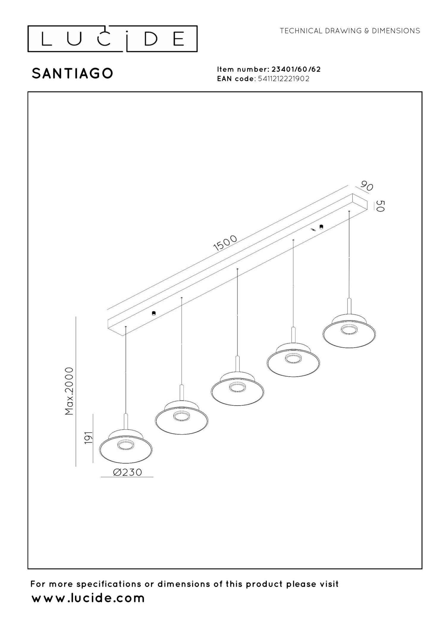 - Deze lamp is in hoogte verstelbaar met behulp van een katrolsysteem