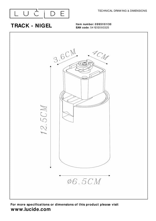 Dit is Nigel, een plafondspot compatibel met een GU10 dim to warm ledlichtbron. Deze geeft licht van 2200 tot 3000k. Een eenvoudig en tijdloos ontwerp met een cilindervormige lampenkap zodat de spot zich in allerlei interieurstijlen thuis voelt. De plafondspot is gemaakt uit aluminium en is 12,5 centimeter hoog. NIGEL, wendbaar op zichzelf, onhoudbaar op de track.  Unieke productkenmerken: • Deze lamp is draaibaar en kantelbaar. • Eenvoudig aan te sluiten op een dimmer (excl.). • Met de bevestigde adapter in één beweging in te klikken in de Lucide track. • Makkelijk uit te breiden met alle accessoires uit het Lucide Track range. • Zo maak je ontelbare mogelijkheden en combinaties  Belangrijke productkenmerken: • Uit te breiden tot: 400m op 1 track, 5 lichten per meter (max 3500 Watt). • Je lampen in de track zijn op elk moment verstel- en verschuifbaar. • Verbruik: 1x50W / 230V / Dimbaar (excl.) • Afmetingen: Ø6,5 cm \ H.12,5 cm • 2 Jaar garantie op de armatuur  Waarom kiezen voor Lucide verlichting?  Lucide staat voor trendsettend design, vakmanschap en betrouwbaarheid. Als Belgisch familiebedrijf met ruim drie decennia aan expertise ontwerpen wij hoogwaardige verlichting die elke ruimte – binnen én buiten – verrijkt en transformeert. Onze veelzijdige collectie omvat duurzame armaturen en energiezuinige lichtbronnen, zorgvuldig ontworpen door onze eigen experts en geproduceerd volgens de strengste CE-normen. Met ons uitgebreide assortiment bieden we jou altijd een geschikte lichtoplossing, ongeacht stijl of ruimte. Zo verlichten we niet enkel jouw leefruimte maar ook jouw keuzeproces in de zoektocht naar kwalitatieve betaalbare verlichting. Bij Lucide combineren we innovatie met vakmanschap, voor verlichting die niet alleen sfeer toevoegt, maar van ieder huis een thuis maakt.