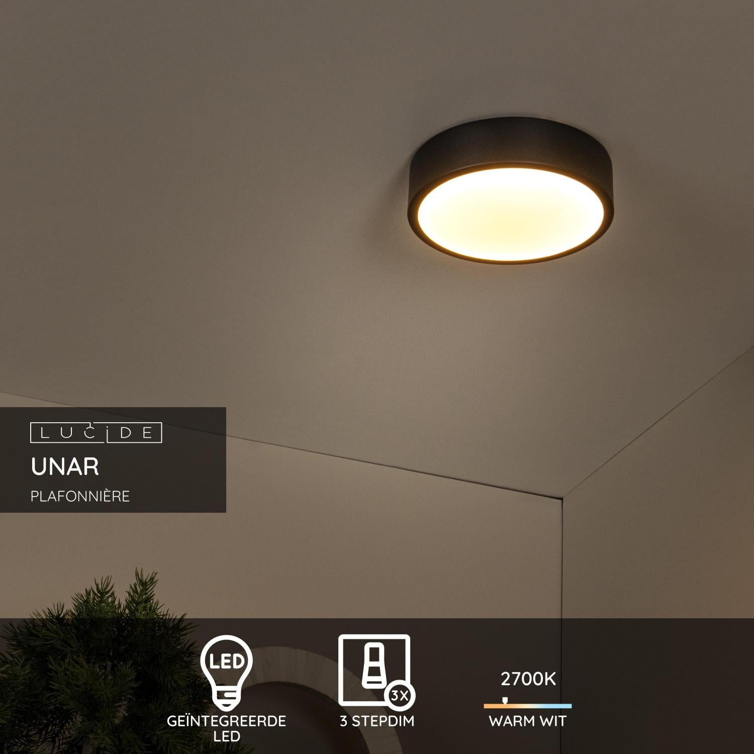 Lucide UNAR - Plafonnière - Ø 20 cm - LED 3 StepDim - 1x12W 2700K - Zwart