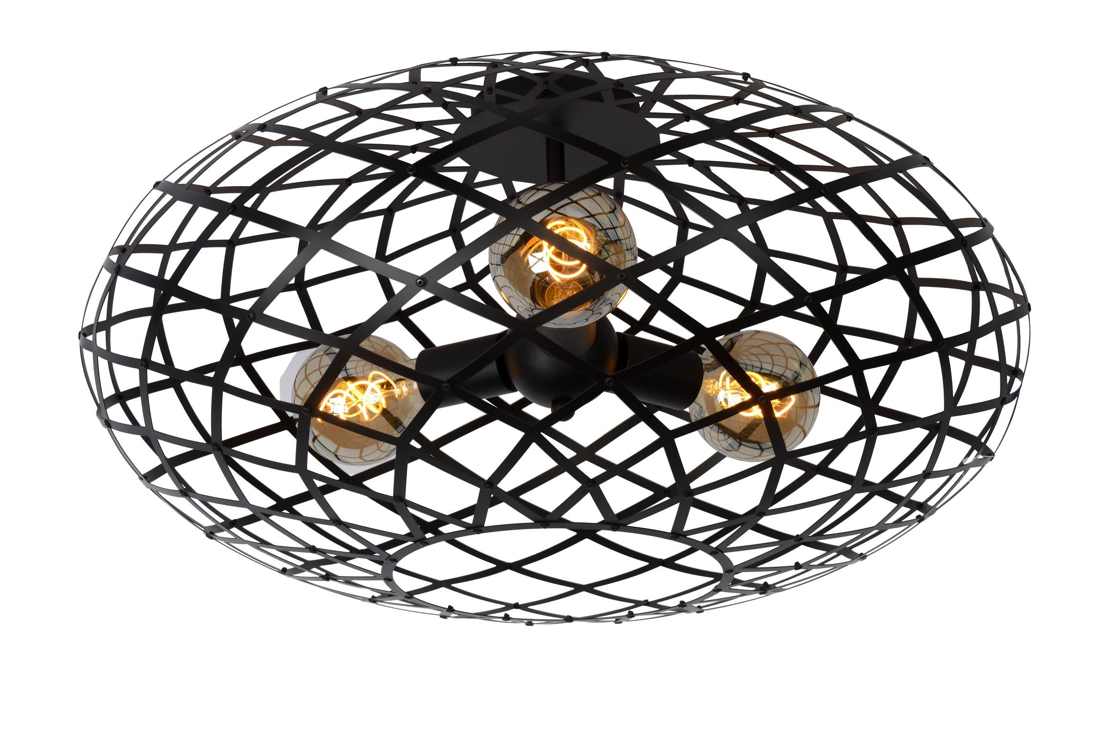 Lucide WOLFRAM Plafonnière 3xE27 - Zwart