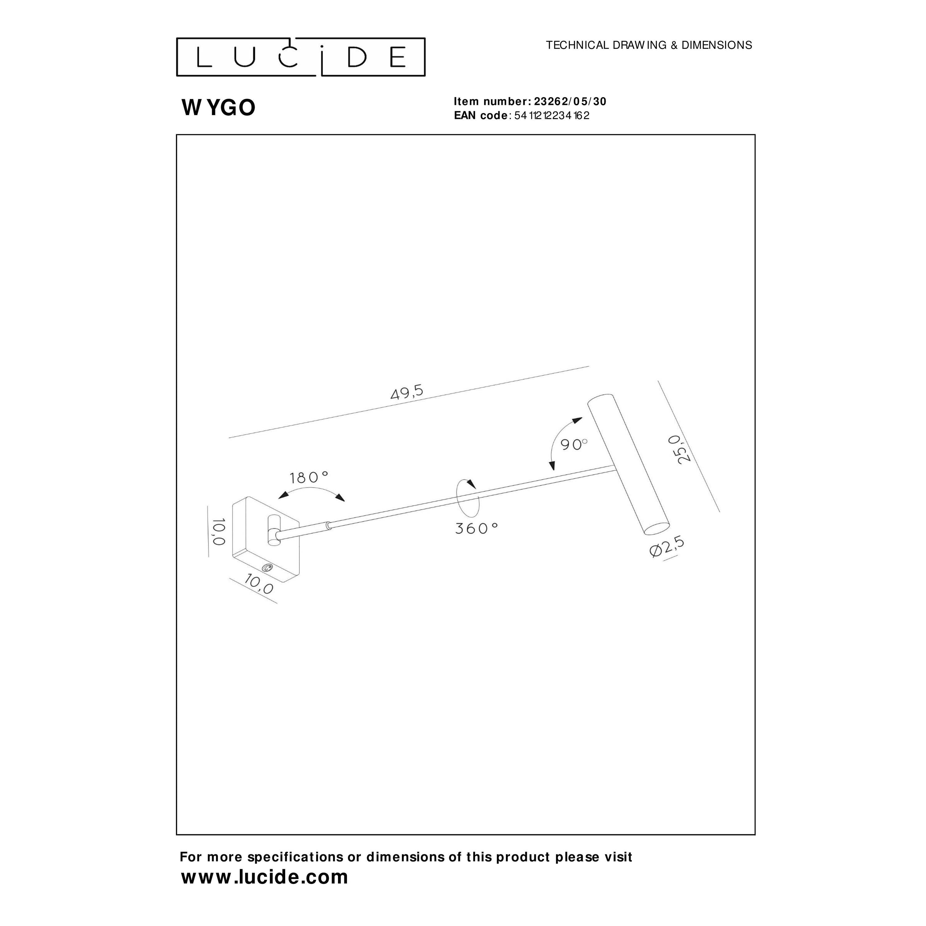 Lucide WYGO Wandlamp 1xGeïntegreerde LED - Zwart