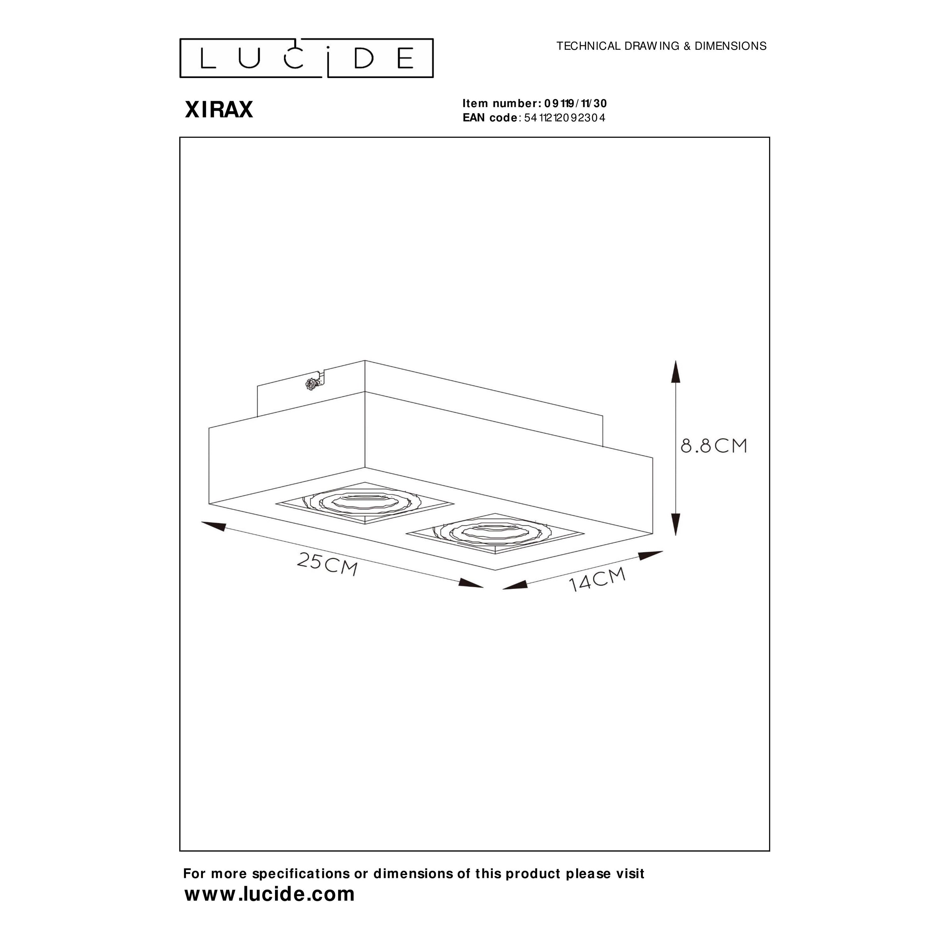 De XIRAX plafondspots zijn het ideale lichtpuntje in jouw huis. Bepaal zelf hoe ze schijnen, de lichtbronnen zijn verstelbaar. De lamp wordt geleverd incl GU10 lichtbron(nen). Het moderne frame bestaat volledig uit aluminium. Unieke productkenmerken: • Geleverd inclusief dimbare lichtbronnen • Dim to warm, dimt naar warmere kleurtemperatuur (2200K-3000K) • Deze lamp is draaibaar en kantelbaar • Eenvoudig aan te sluiten op een dimmer (excl.) • vervaardigd uit hoogwaardig aluminium Belangrijke productkenmerken: • Verbruik: 5W / 230V / Dimbaar • 2 Jaar garantie op het armatuur Waarom Lucide verlichting kopen? Lucide ontwikkelt en produceert sinds haar oprichting in 1992 hoogwaardige en trendsettende lichtoplossingen. Deze 2 elementen zijn de basis voor het toonaangevend assortiment van het in Antwerpen gevestigde bedrijf. Een team van Lucide designers, aangevuld met freelance ontwerpers, ontwikkelen dagelijks tal van nieuwe producten. Innovatieve materiaalkeuze, vormgeving en kleurtoepassing in combinatie met de meest actuele lichttechnologie stelt Lucide daarbij continue centraal.