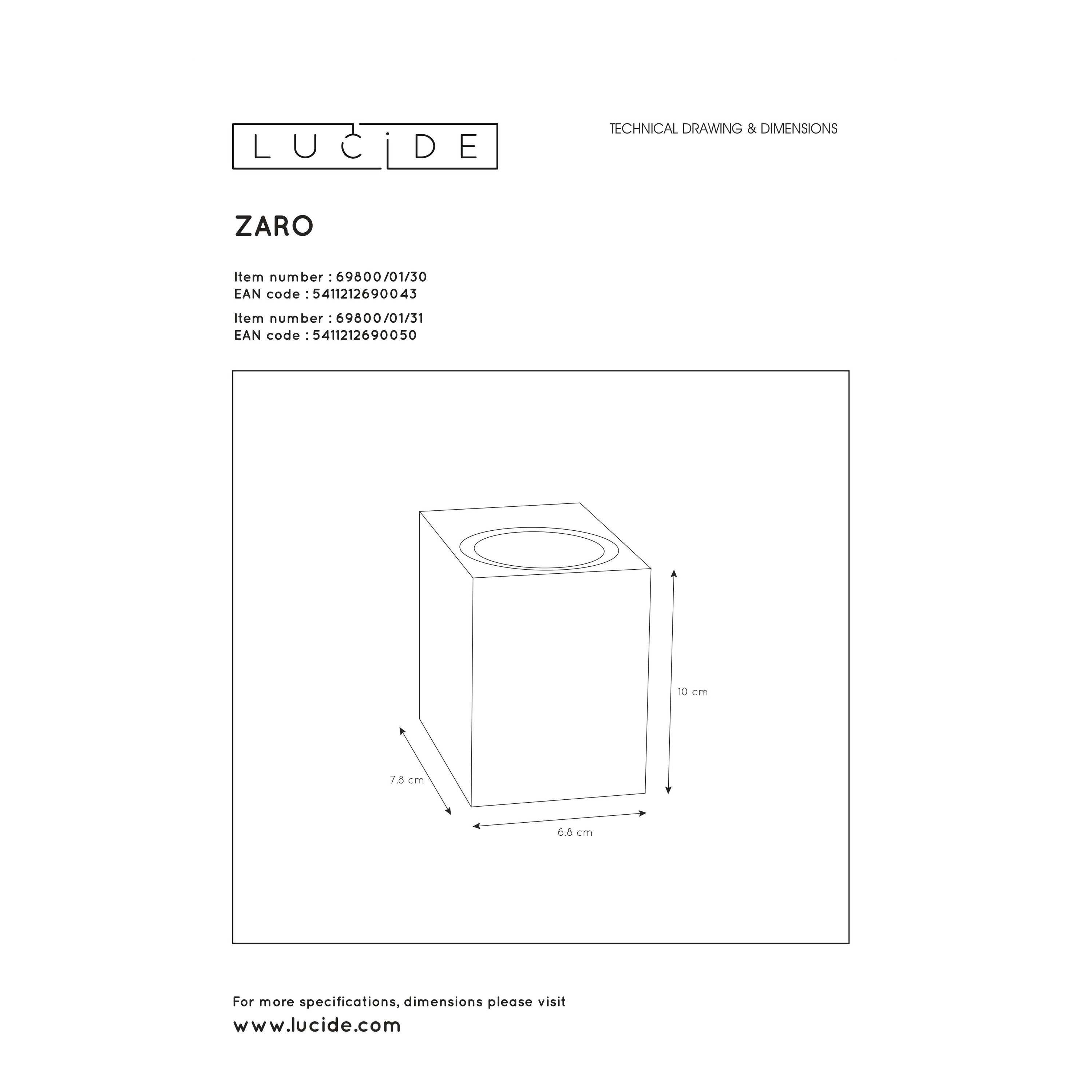 Ook door weer en wind staat wandspot Zaro zijn mannetje. Dit moderne armatuur is speciaal ontworpen voor langdurig buitengebruik. Dat hij tegen een stootje kan, is een understatement. Al betekent dat niet dat hij ruw oogt. In tegendeel. Het rechthoekig design in hoogwaardig aluminium heeft een slanke uitstraling. Binnenin zit het lichtpunt veilig afgeschermd. En zoals het hoort bij hedendaagse verlichting is Zaro compatibel met een ledlamp. Dat maakt het plaatje van je buitenomgeving compleet. Unieke productkenmerken: • Geschikt voor toepassing met LED lichtbron • Eenvoudig aan te sluiten op een dimmer (excl.) • Vervaardigd uit hoogwaardig aluminium Belangrijke productkenmerken: • Speciaal ontworpen voor langdurig en betrouwbaar buitengebruik (Conform IP44) • Verbruik: 1x35W / 230V / Dimbaar (lichtbron niet inbegrepen) • Afmetingen: L.6,8 x B.7,8 x H.10 cm • 2 Jaar garantie op het armatuur / Passende lichtbron is EAN: 5411212490643 Waarom kiezen voor Lucide verlichting? Lucide staat voor trendsettend design, vakmanschap en betrouwbaarheid. Als Belgisch familiebedrijf met ruim drie decennia aan expertise ontwerpen wij hoogwaardige verlichting die elke ruimte – binnen én buiten – verrijkt en transformeert. Onze veelzijdige collectie omvat duurzame armaturen en energiezuinige lichtbronnen, zorgvuldig ontworpen door onze eigen experts en geproduceerd volgens de strengste CE-normen. Met ons uitgebreide assortiment bieden we jou altijd een geschikte lichtoplossing, ongeacht stijl of ruimte. Zo verlichten we niet enkel jouw leefruimte maar ook jouw keuzeproces in de zoektocht naar kwalitatieve betaalbare verlichting. Bij Lucide combineren we innovatie met vakmanschap, voor verlichting die niet alleen sfeer toevoegt, maar van ieder huis een thuis maakt.