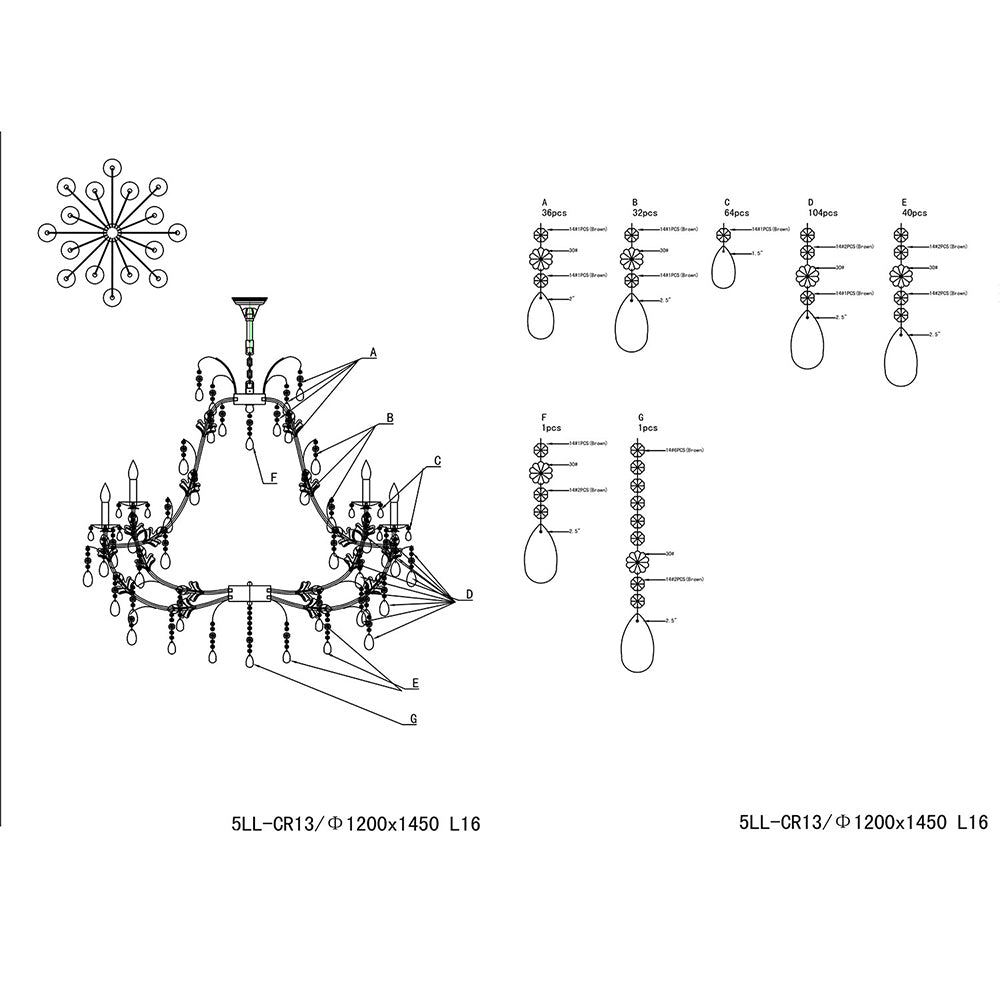 - Maat: Ø 135x125/180 cm E14/max 16x40W