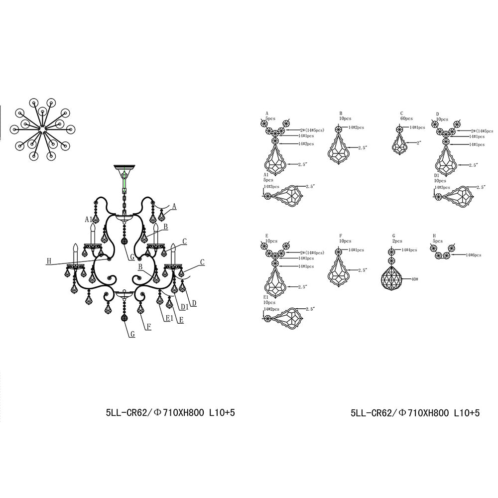 - Maat: Ø 71x80 cm E14/max 15x40W