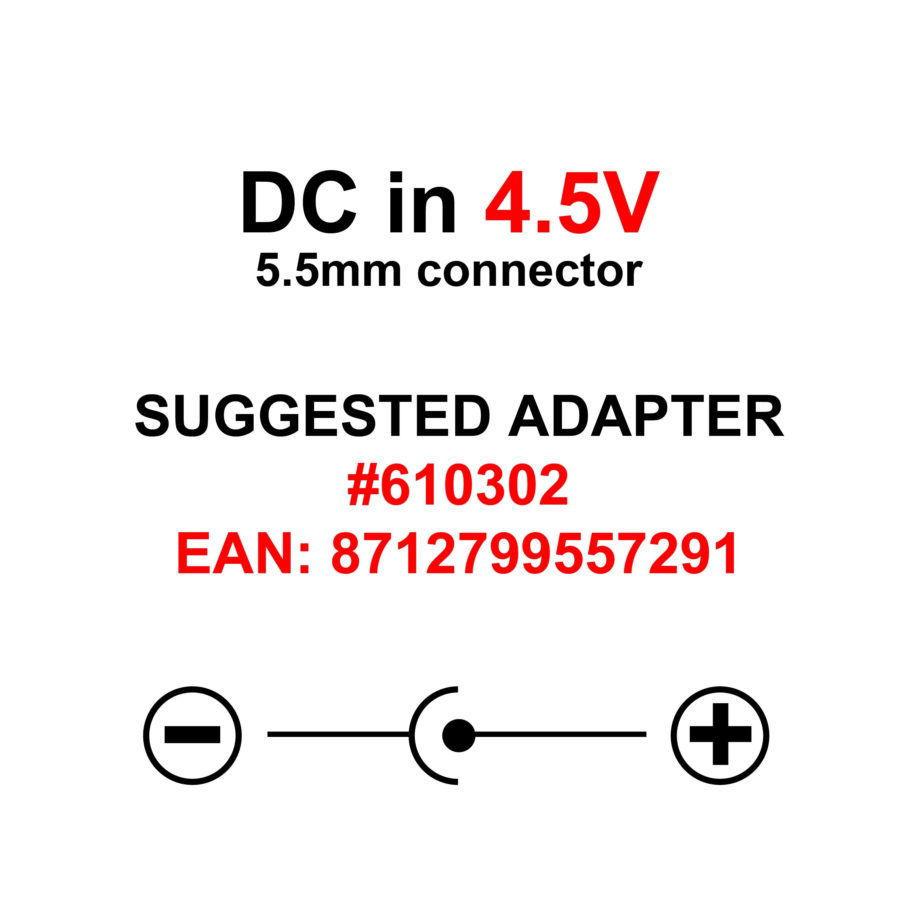 - Werkt op 3 AA batterijen (niet inbegrepen) of via adapter