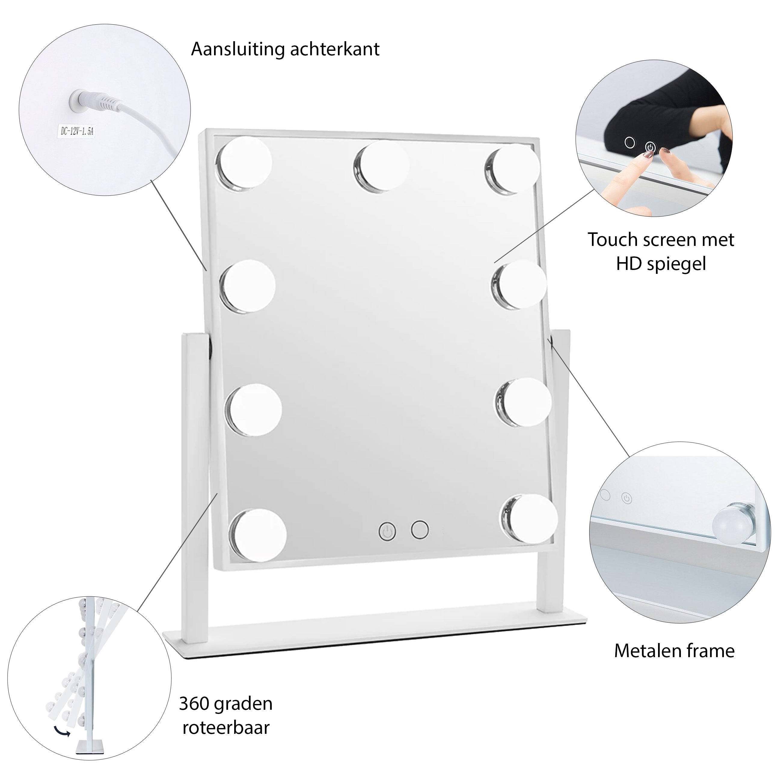 - Het sterke frame van de fraaie Hollywood spiegel is gemaakt van metaal en leent zich voor intensief gebruik.