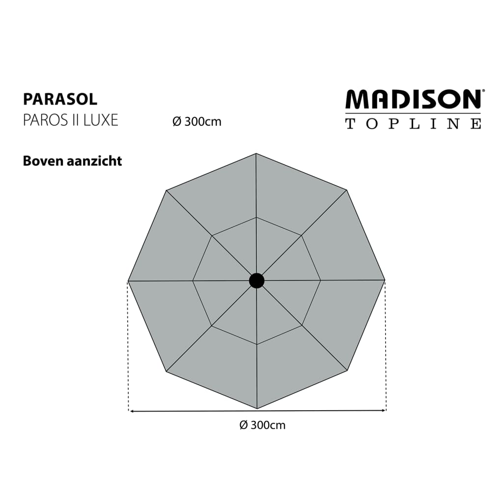 - Afmetingen parasol: 300 x 258 cm (ø x H)