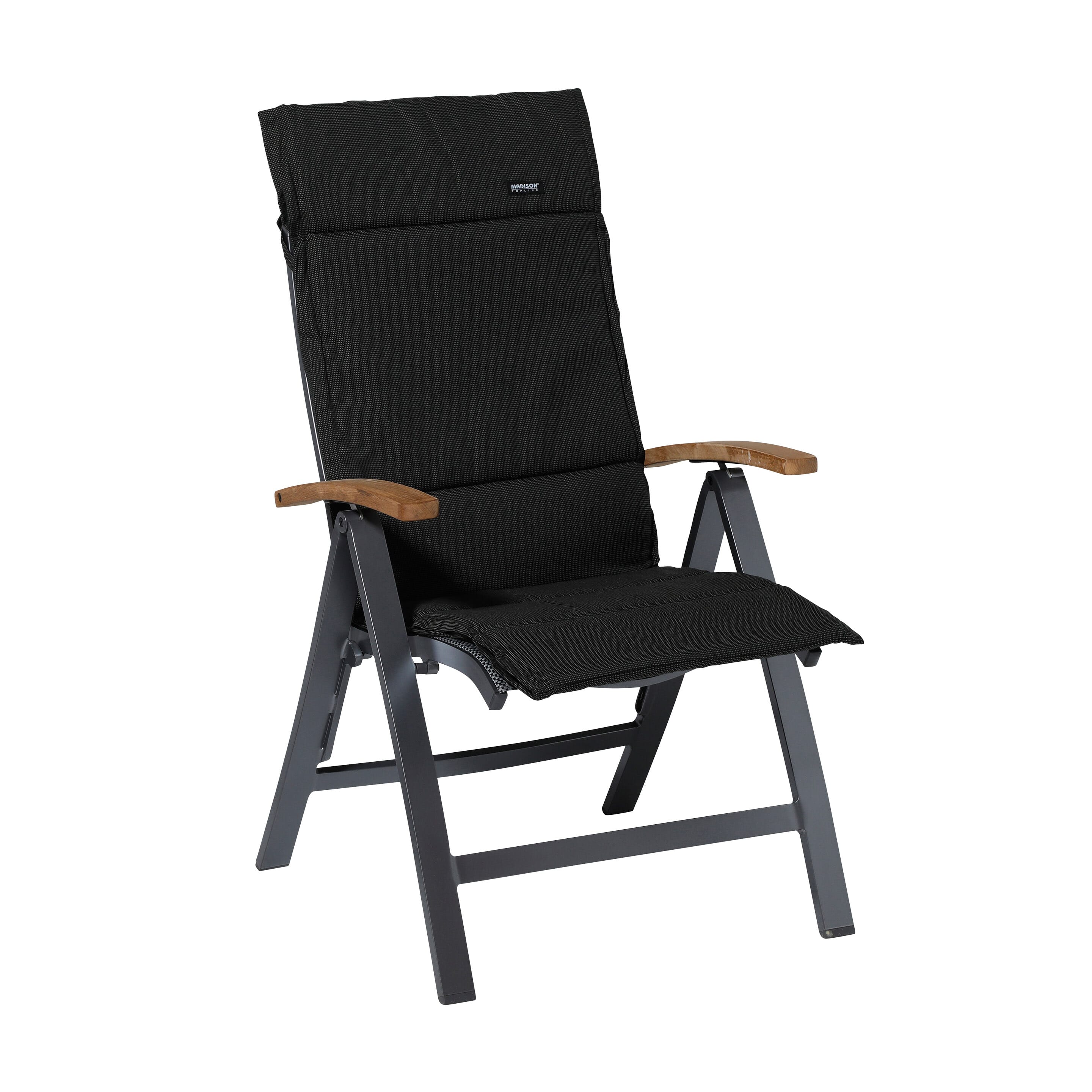Bent u op zoek naar dunne tuinkussens voor een textileen tuinstoel? Madison Fiber kussens geven uitstraling en comfort aan uw tuinstoel. Het kussen is ook passend voor een tuinstoel met verstelbare rug leuning. Het kussen wordt gemaakt met 3 verstelbare klittenband gespen om het kussen op de juiste plek te houden. de kleur Rib black is een traditionele geweven stof. Het dessin is jarenlang goed en gangbaar met alle trends. Daardoor is het dessin goed als basis te gebruiken bij uw kleurencombinatie. Het kussen is gemaakt van 100% Dralon, dit geeft het kussen een luxe uitstraling en maakt het duurzamer dan elk ander kussen. Hierbij is de stof zeer kleurvast en ook nog eens onderhoudsvriendelijk. Een van de eigenschappen van een textileen kussen is het dat het verkoeling geeft als het in de zon te warm wordt. Daartegenover behoudt het kussen de warmte ook langer wanneer het in de avonden afkoelt. Daarbij is het fiber tuinkussen een aantal keren extra doorgenaaid om uw stoel nog meer uitstraling te geven. Zo maakt het kussen van Madison jouw tuin helemaal jouw tuin.