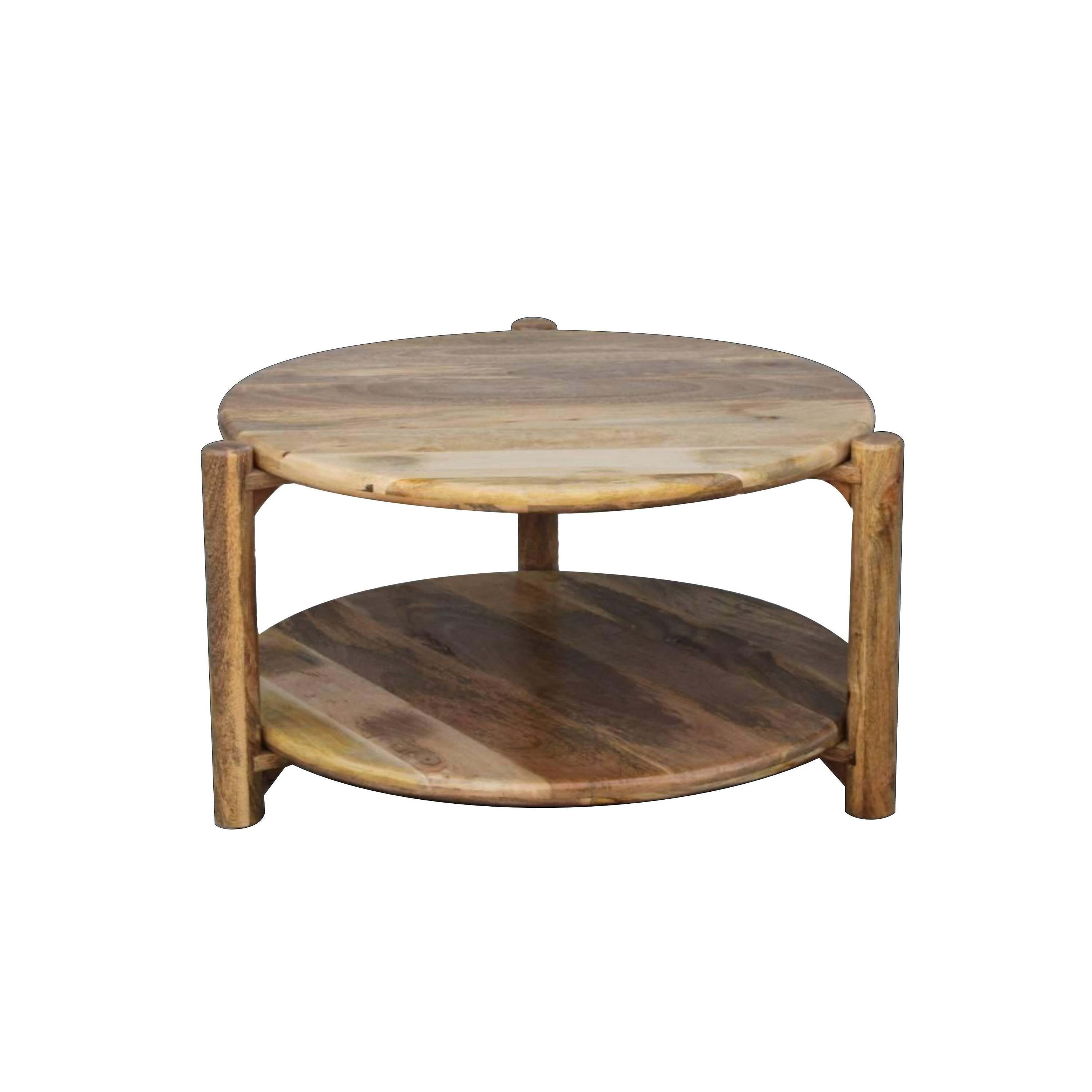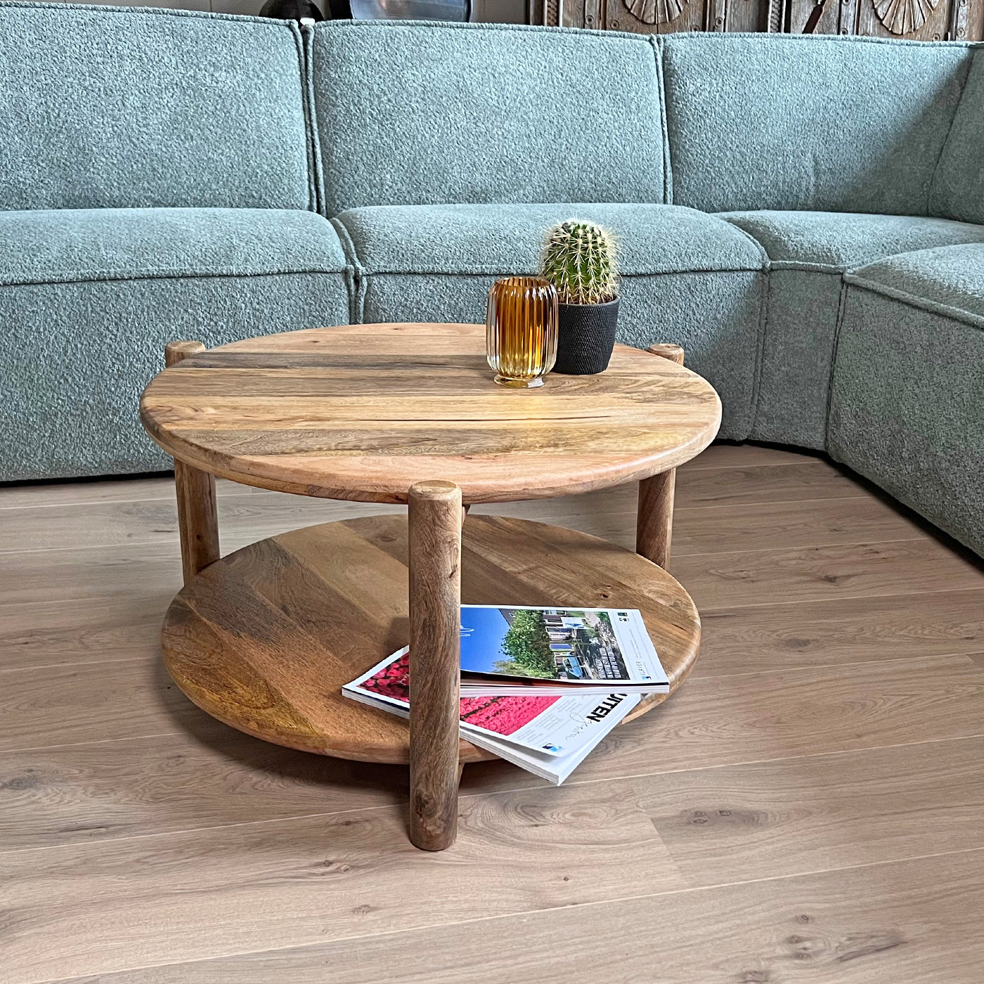 Deze salontafel is een prachtige ronde salontafel van mangohout in een lichtbruine kleur. De ronde tafel heeft een diameter van 75 cm. In tegenstelling tot andere mango houten meubelen is de salontafel glad afgewerkt en daarna in een blanke lak gezet dit geeft dit uw interieur een chique maar ook een warme uitstraling! Bestel uw salontafel direct online of kom langs in onze showroom! Mangohout is nu super trendy. Deze uitvoering heeft een landelijke en Industriële uitstraling. De structuur van dit hout is heel uniek en niet te vergelijken met andere hout soorten. Het hout van de mangoboom groeit relatief snel en de stam van deze boom heeft vaak een flinke diameter. Het oude hout wordt pas gekapt als de boom geen vruchten meer draagt en is daarom erg duurzaam.