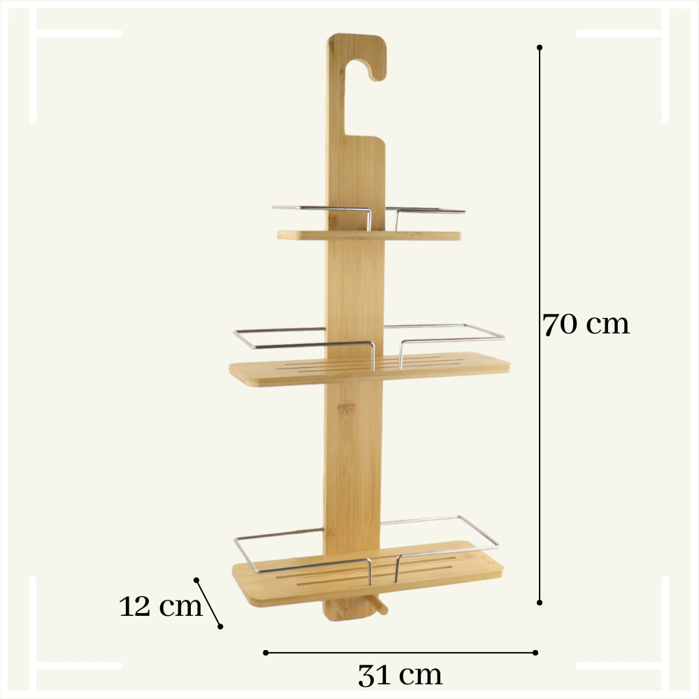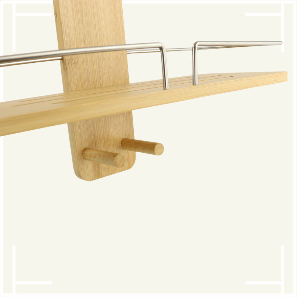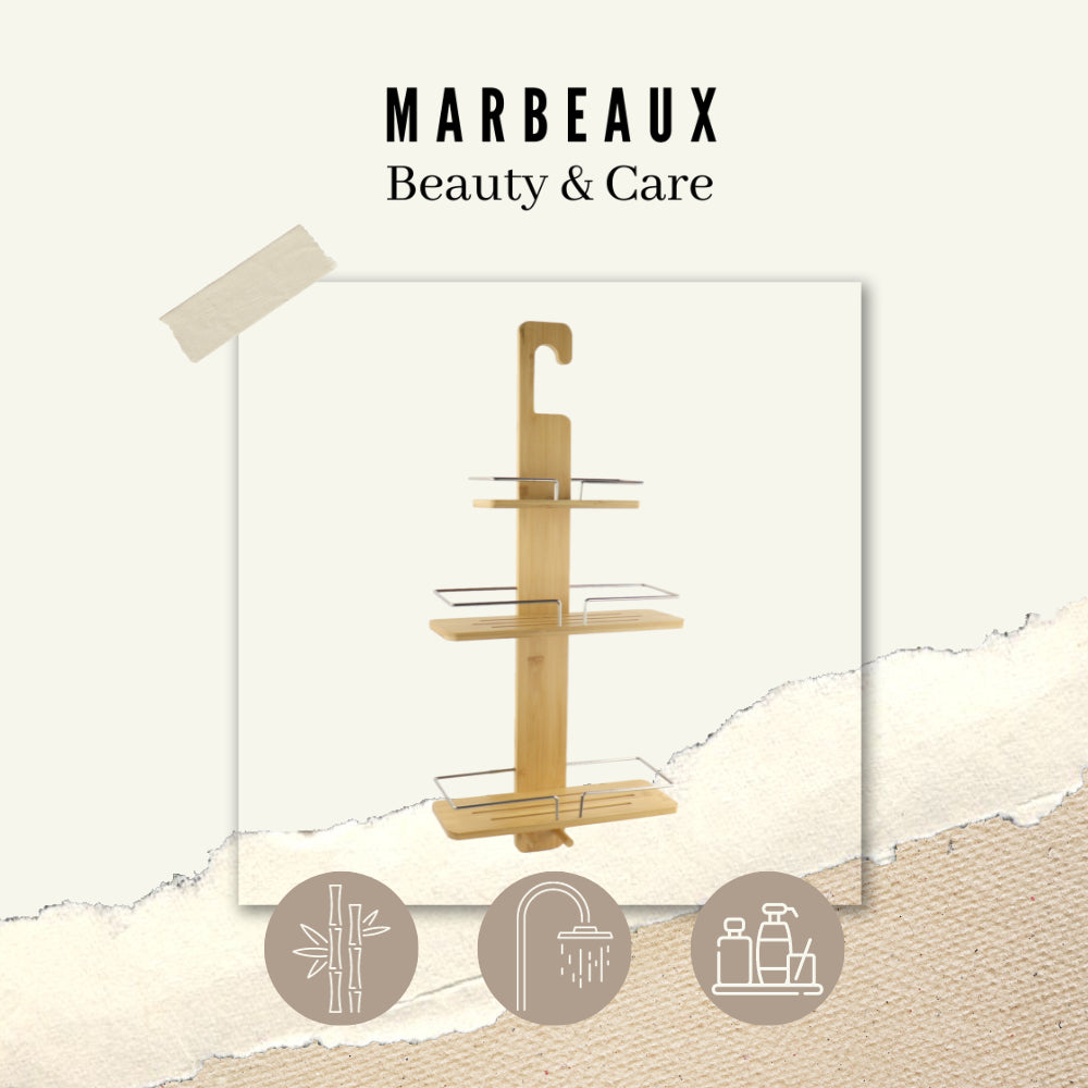 Dit Marbeaux douchrek is een handig rekje voor douche benodigdheden. Voor het ophangen van dit rek is boren niet nodig. Met behulp van de zuignappen is dit rekje te bevestigen. Het rek is gemaakt bamboe.