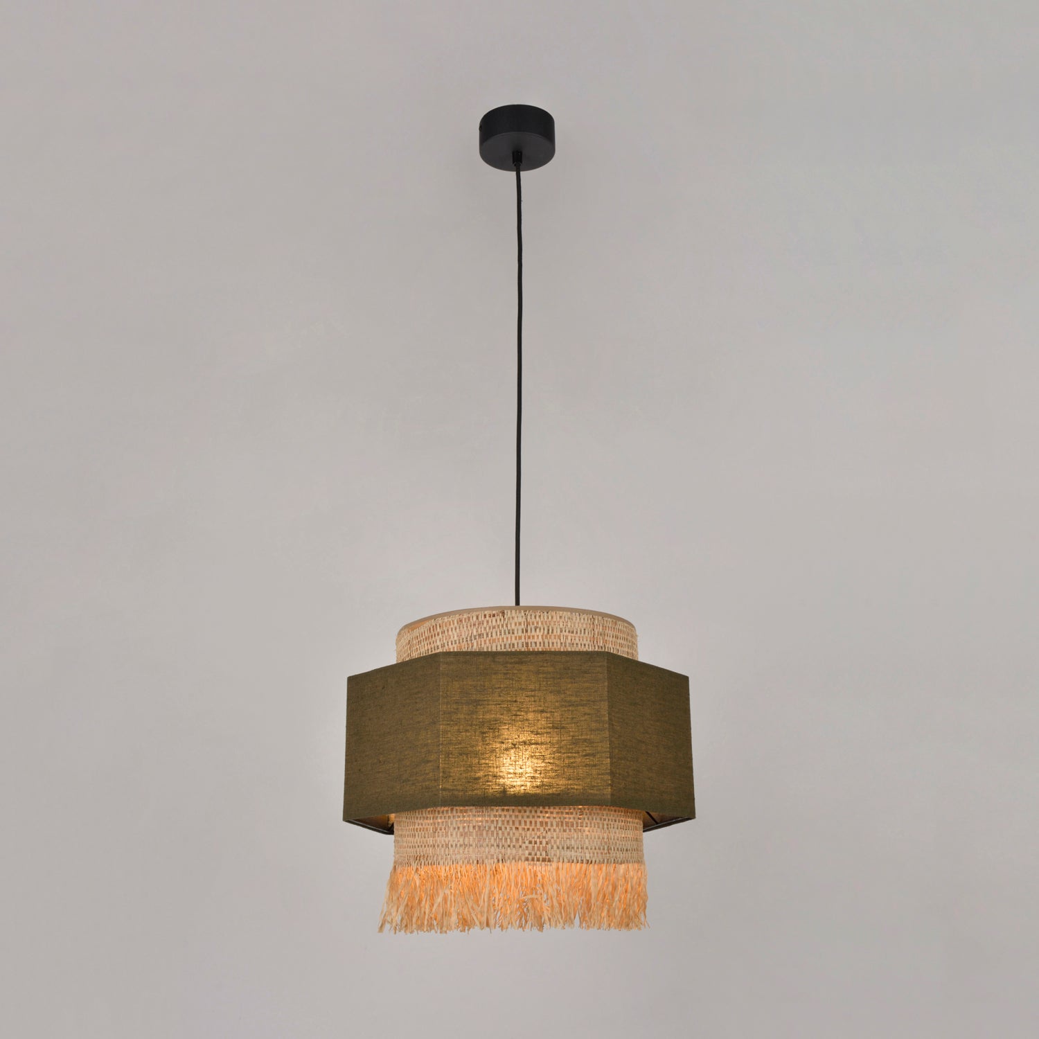 - Speelse groene hanglamp gemaakt van linnen en raffia