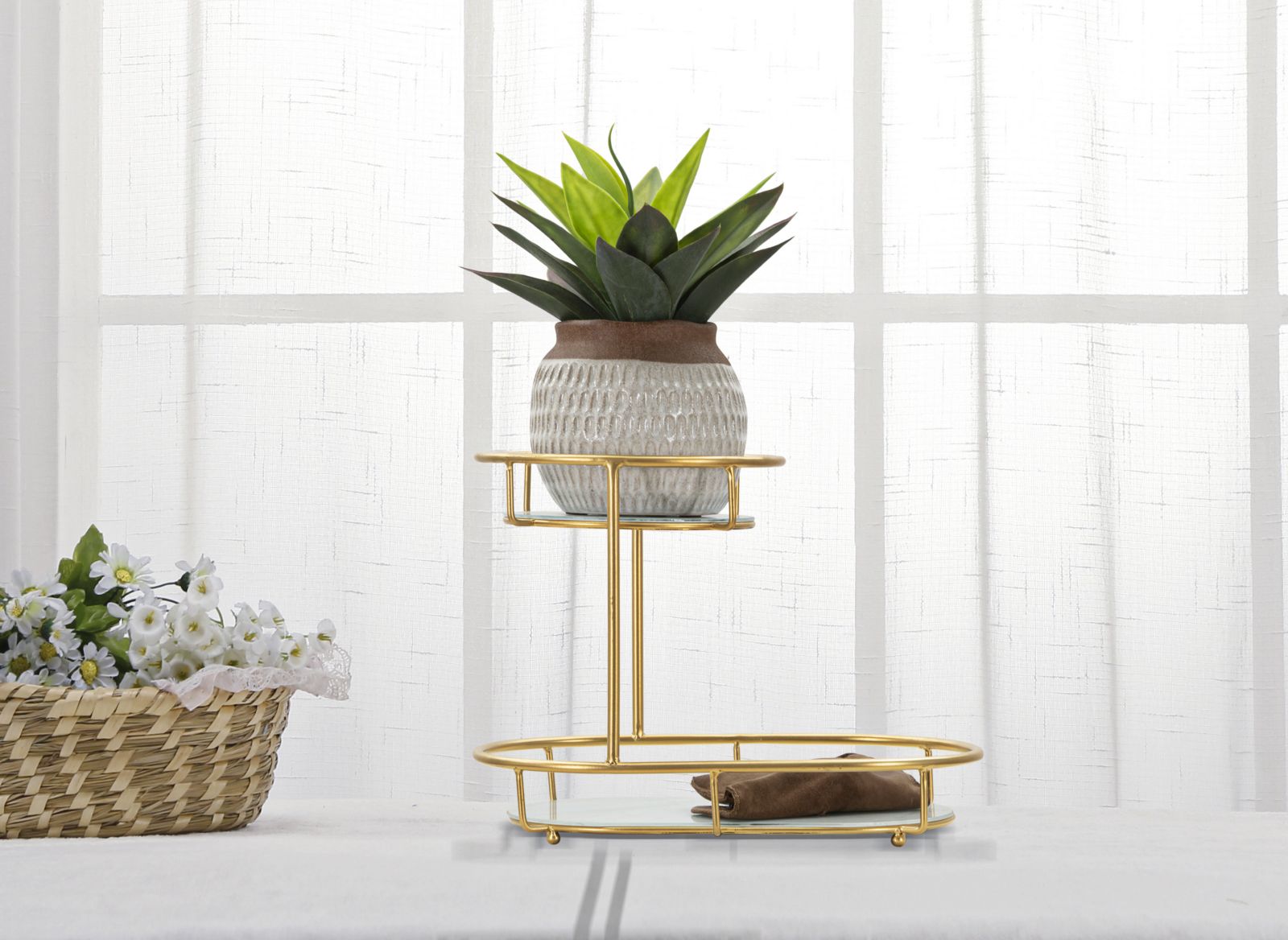 Mauro Ferretti 2 Levels Goudmetalen opbergruimte met 2 legborden