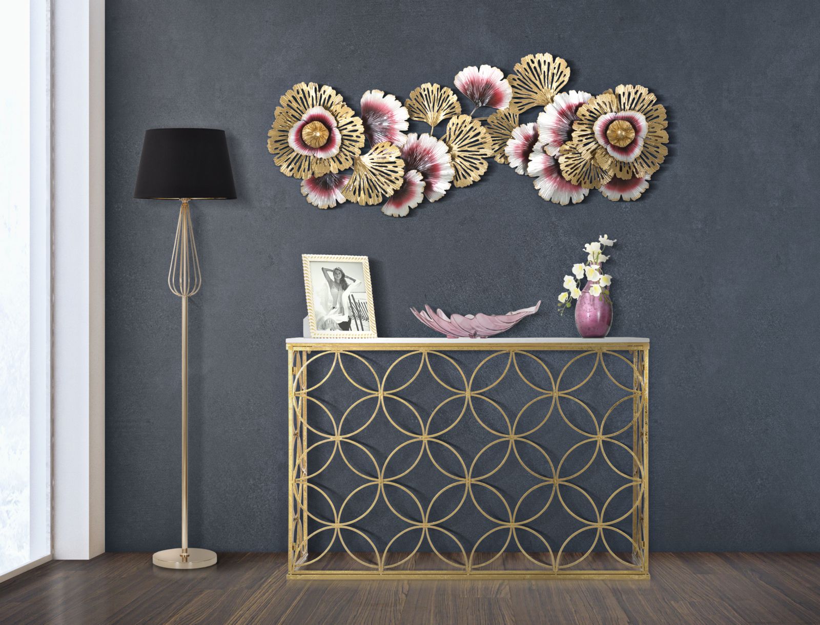 Mauro Ferretti Star Marble Console in goud metaal met wit blad