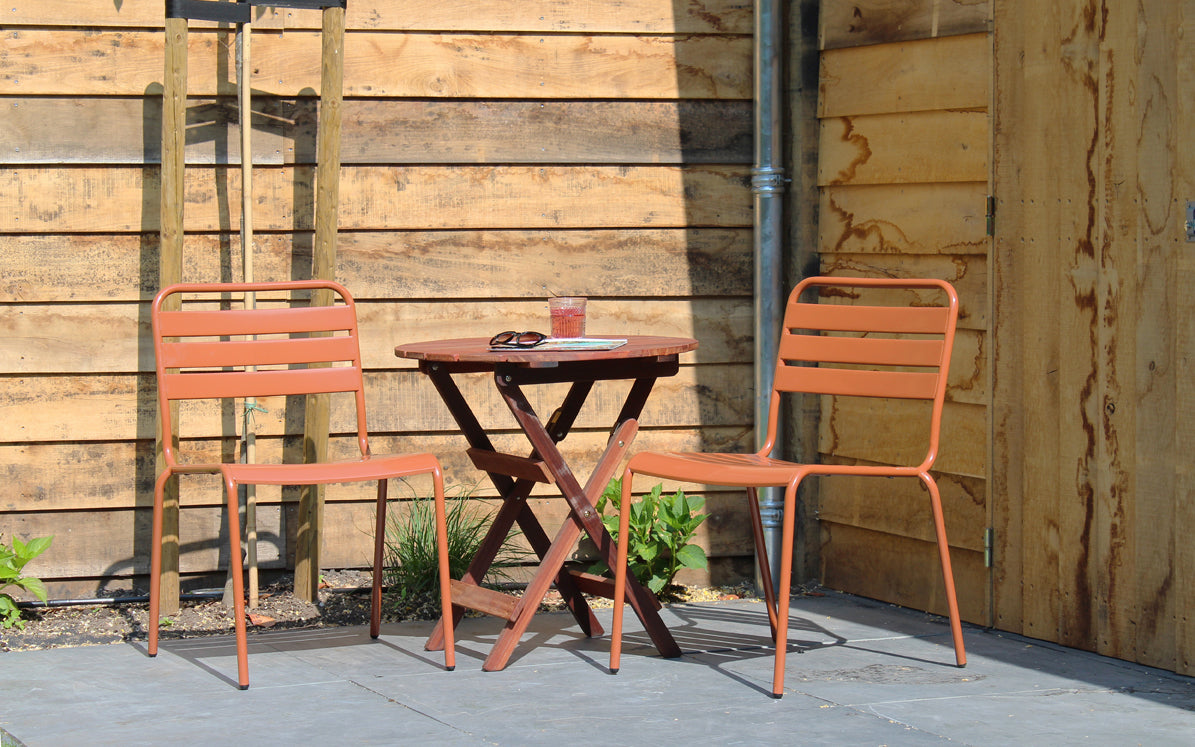 Lekker lang tafelen, heerlijk met het hele gezin ontbijten of lekker borrelen met vrienden? Heel leuk en gezellig, maar 1 ding is dan wel heel belangrijk; comfort! Je stoel moet lekker zitten. Onze Max stoelen zijn dan perfect. Waarom vraag je je af? De rondingen in het roestbruine metalen zitvlak en rugleuning zorgen voor maximaal comfort. Daarnaast is de rugleuning extra hoog (81 cm), de zitting extra breed (50 cm) en kan tot 150 kg iedereen op de stoel zitten. Wil je het zitcomfort nog verder verhogen? Dan zijn de Vaiana en Antro stoelkussens een aanrader. De Vaiana en Antro stoelkussens passen perfect op onze Max tuinstoel en zorgen ervoor dat je heerlijk zit. Tegelijkertijd voeg je ook een stukje sfeer toe aan je terras. Aan de achterzijde van het kussen zitten 2 linten waarmee je de kussens aan de stoelpoot vastmaakt, zodat het kussen op zijn plek blijft liggen. Avond ten einde? In een mum van tijd stapel je de stoelen op elkaar en is alles opgeruimd!