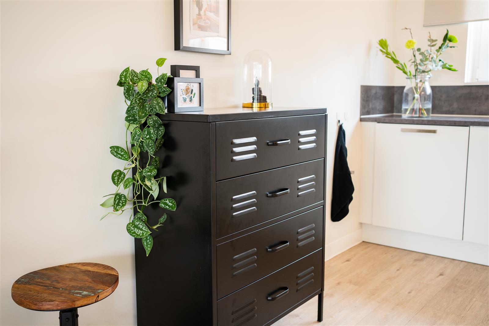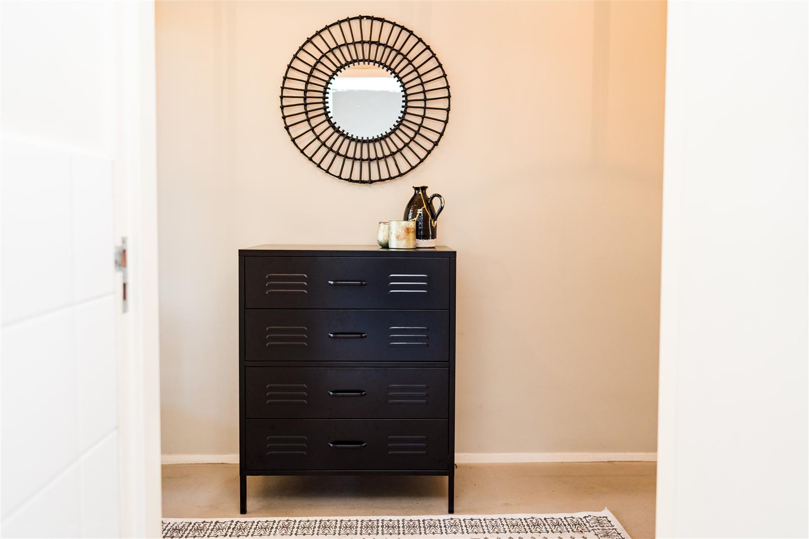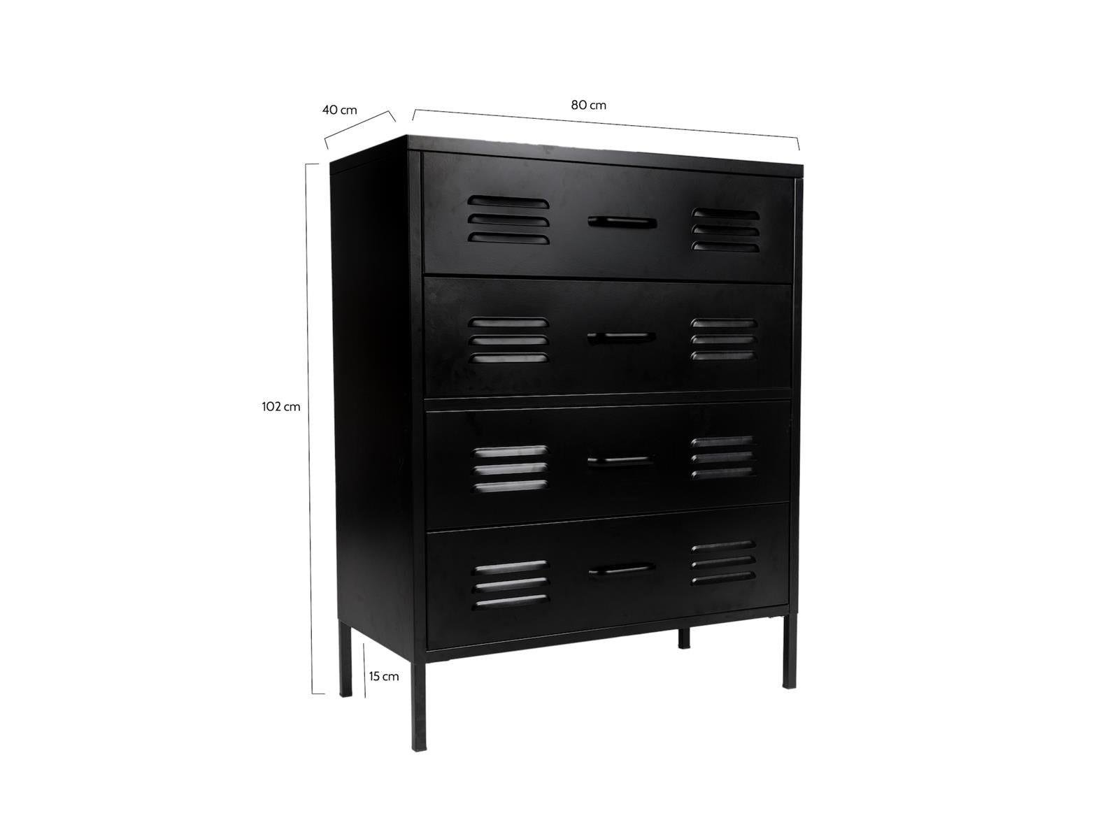 De zwart gecoate lockerkast heeft 4 lades waarin je enorm veel kwijt kan. Zet je hem in de gang? Dan kunnen alle sjaals en mutsen van het hele gezin erin en op de kinderkamer is hij ideaal voor het opbergen van speelgoed of kleding. De lockerkast wordt als bouwpakket geleverd zodat je eerst kan bepalen waar in huis je hem wil hebben. Tip van ons: Is deze ladekast niet helemaal wat je zoekt qua maat, maar ben je wel onder de indruk van onze lockerkast? We hebben diverse modellen in verschillende maten en kleuren!