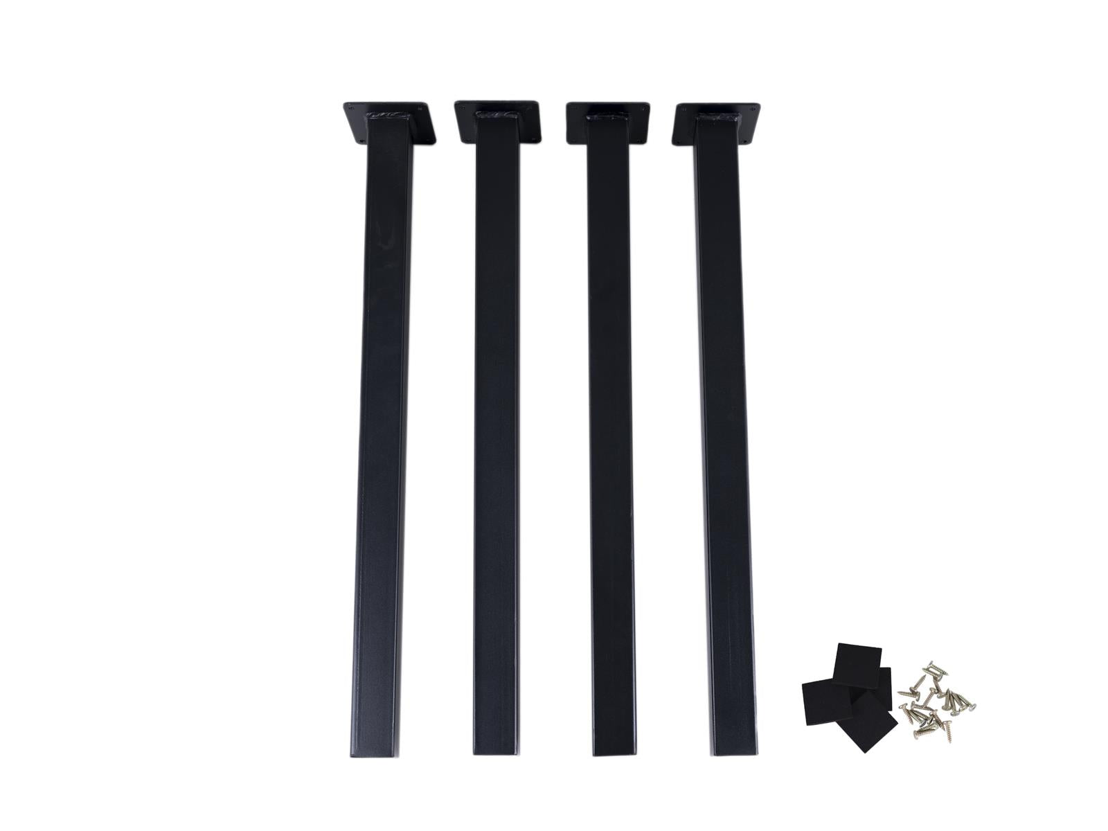 De vierkante industriële poot is gemaakt uit staal van 5 cm x 5 cm. Om extra stevigheid te krijgen hebben wij de poot voorzien van een bevestigingsplaat van 10 cm x 10 cm voorzien van vier schroefgaten. Onze rechte poten zijn hierdoor ook geschikt voor zwaardere tafelbladen, kasten etc. De set zwarte poten wordt geleverd inclusief 18 schroeven 5 x 25 mm voor onze 28-30 mm dikke tafelbladen. Met slechts enkele schroeven maak je van je huidige kastje of bijzettafel een superhip meubelstuk.