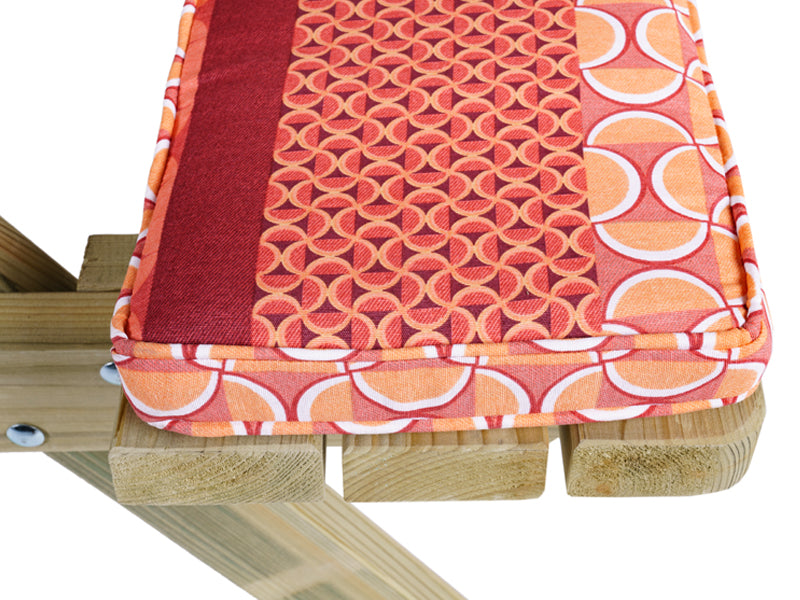 Wat maakt onze picknicktafelkussen zo uniek? - Verkrijgbaar in verschillende maten - 5 cm dik kussen - Creëert sfeer - Het kussen kan worden bevestigd aan de bank