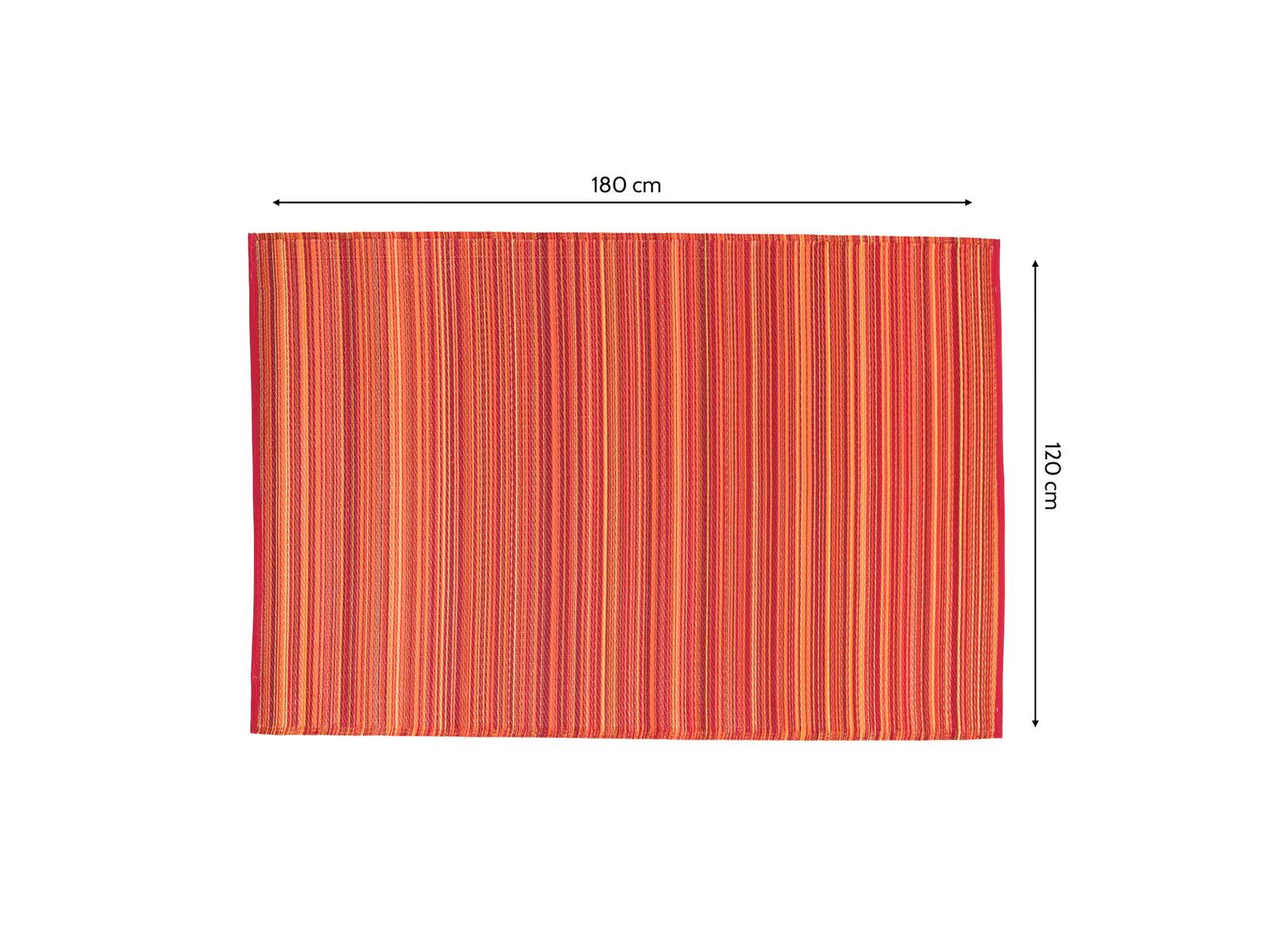 Dit plastic buitenkleed heeft een prachtig geweven patroon in verschillende kleuren rood en oranje. We zien steeds meer warme aardetinten terugkomen in het interieur. Dit is geinspireerd op de aarde en de volkeren die de aarde eren zoals de inca en de indianen. Denk hierbij aan warme tinten rood, oranje, roestbruin en terracotta. Deze kleuren zijn prachtig te combineren met natuurlijke materialen zoals bamboe, hout en aardewerk. Zet er nog een paar cactussen bij en je creëert in een handomdraai je eigen binnentuin! Waarom worden we zo blij van dit buitenkleed? - Maakt de zomer nog vrolijker - Beschermt je voeten tegen hete tegels - Makkelijk schoon te maken - Eenvoudig mee te nemen naar camping, park of strand - Staat ook super leuk in de kinderkamer Tips van ons: Dit plastic kleed uit gerecycled plastic is 120 cm breed en heeft een lengte van 180 cm. Twijfel je of het kleed in je tuin of op je balkon past? Meet het dan VOOR aankoop even op zodat we niet onnodig pakketten heen en weer sturen en samen het milieu onnodig belasten. We hebben duidelijke detailfoto’s van het kleed bij het product geplaatst mocht je desondanks nog extra foto’s of informatie willen hebben voordat je het product besteld dan horen we het graag!