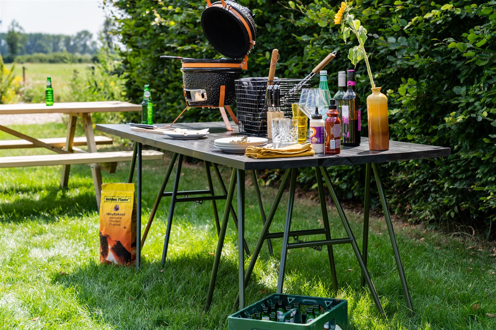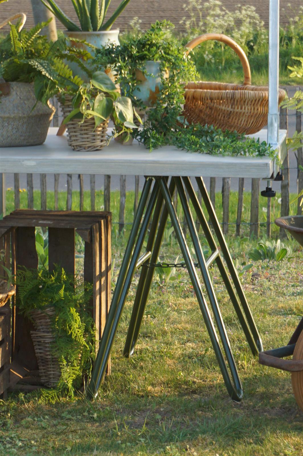 Materiaal De schragen zijn verzinkt en gecoat en hebben weinig onderhoud nodig. Ga er af en toe met een sopje van afwasmiddel er over heen om de coating te beschermen. Op deze manier hebben vuil en agressieve stoffen minder kans om de coating aan te tasten. Ga je de schragen permanent buiten gebruiken? Dan is roestvorming bij metaalproducten nooit 100% uit te sluiten. Denk er daarom aan om een lakstift mee te bestellen voor onderhoud. Levering Bestel je 1 set? Dan ontvang je een pakket van 82 x 77 x 13 cm met een gewicht van 14 kg. Dit product wordt geleverd met DPD. De DPD bezorger komt 1 keer bij je aan de deur. Ben je niet thuis en lukt het niet om het bij de buren af te geven? Dan is het afhankelijk van de grootte en het gewicht van je pakket of het opnieuw wordt aangeboden of dat het naar een parcelshop gaat. Heb je nog een opmerking voor de chauffeur? (Bijvoorbeeld dat de bel het niet doet of dat het bij de buren mag worden geleverd?) Hang dan een briefje op de voordeur. Het is voor ons helaas niet mogelijk om de chauffeur voor levering extra informatie mee te geven. Wil je nog meer weten over het verzenden met DPD neem dan contact met ons op. Opbouw Zoals gezegd is dit zo gepiept, je klapt de schragen uit en that’s it! Het metalen kettinkje zorgt ervoor dat de breedte van de schraag gelijk blijft op zo’n 50 cm.