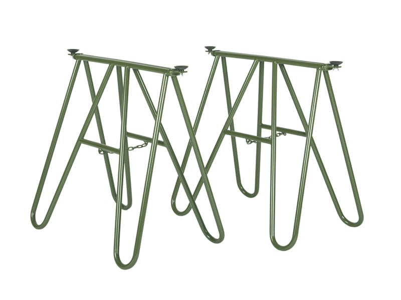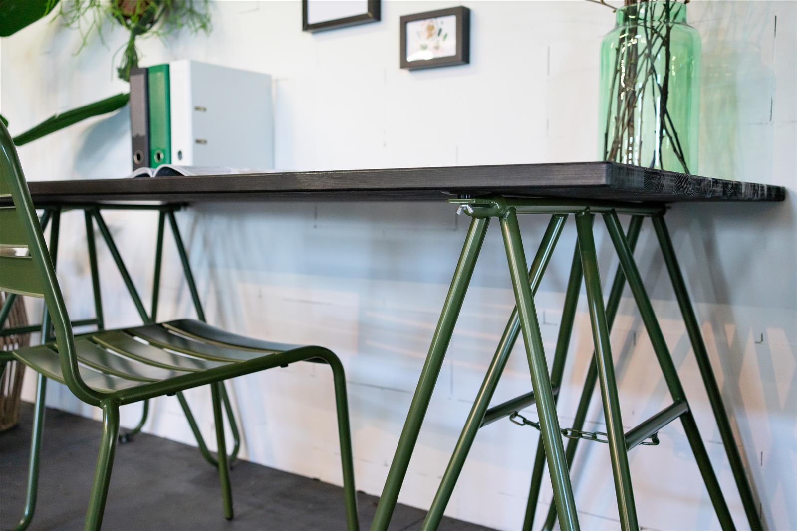 Waarom zijn onze sets schragen zo praktisch? - Snel en makkelijk op te zetten - Je bepaalt zelf de lengte van je tafel - Bevestiging van het blad met rubberen zuignappen (demontabel) - Makkelijk op te bergen - Makkelijk mee te nemen Tip van ons: Voor de poten van deze legergroen gecoate schragen zijn bodem beschermsets verkrijgbaar. De rubber bodem beschermers klik je eenvoudig onder de poten van je schragen en zorgen ervoor dat zowel je schraag als de vloer niet beschadigt. Ga je de tafel als eettafel of bureau gebruiken? Hou er dan rekening mee dat de schragen uitgeklapt 50 cm (per stuk) ruimte onder je tafelblad innemen!