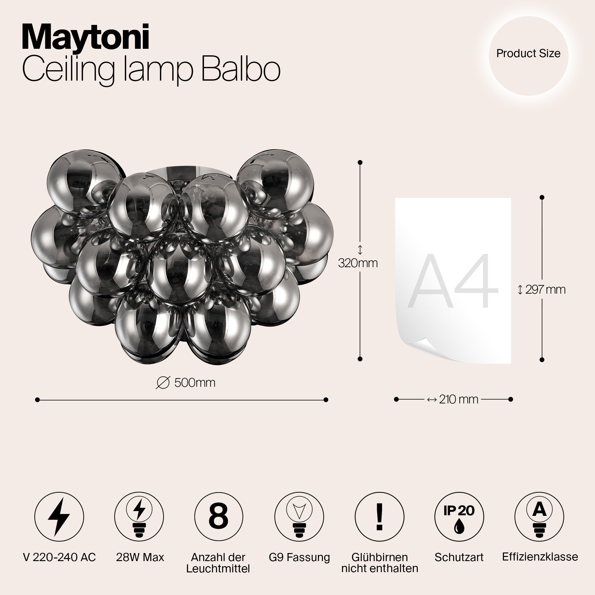 - Uitgerust met 8 G9-lampen
