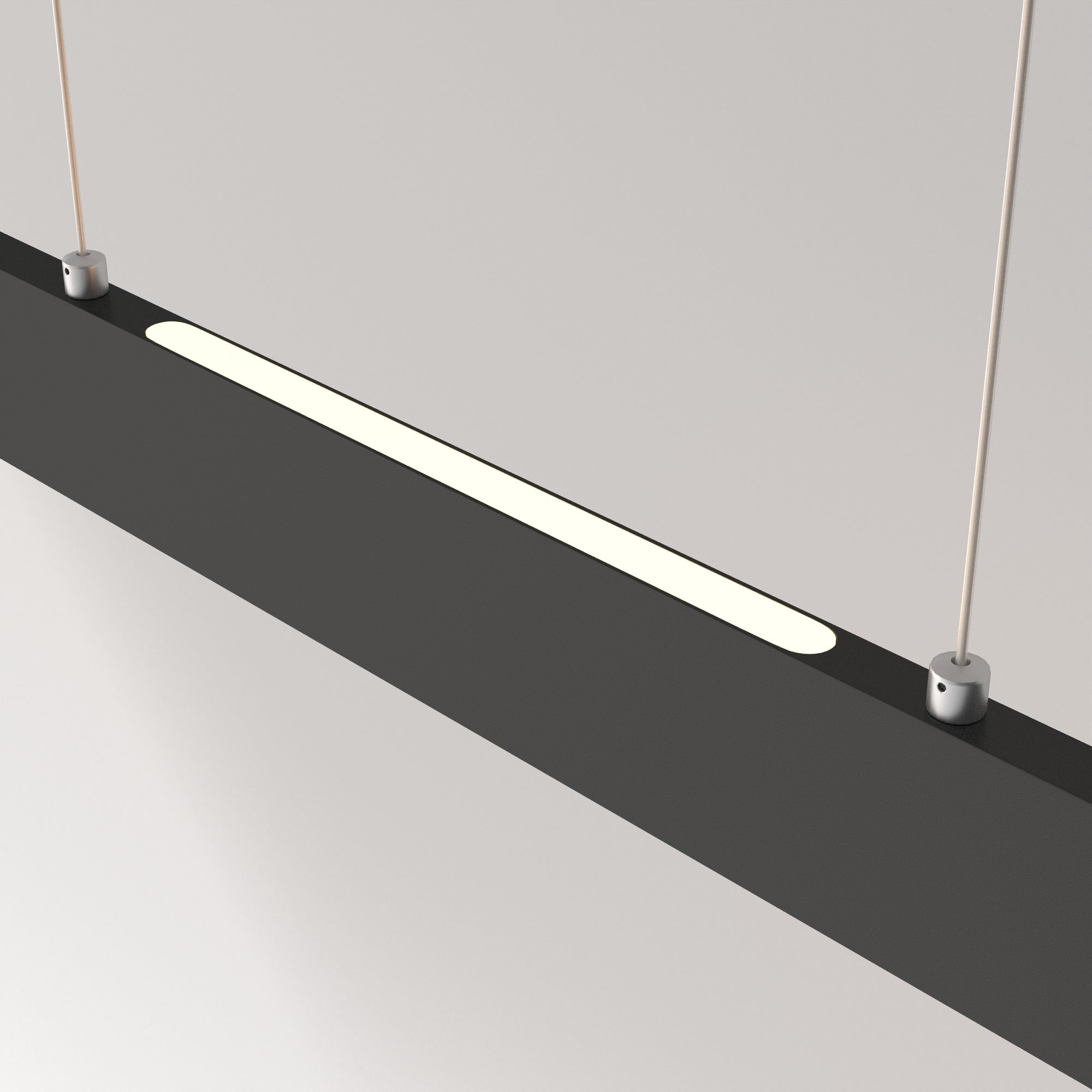 Step Serie: Een reeks stijlvolle hanglampen in een moderne stijl met een gouden kleur. De Step-modellen bieden gebalanceerde gerichte en gereflecteerde verlichting. SMD-LED's worden gebruikt als lichtbronnen, geïnstalleerd in een aluminium behuizing en bedekt met een opalen diffuser; deze oplossing zorgt voor maximaal comfortabel zacht licht. Een breed scala aan armatuurmogelijkheden maakt eenvoudige integratie in verschillende projecten mogelijk. Moderne Industriële Ontwerp: Deze hanglamp heeft een strak, eigentijds industrieel ontwerp, perfect om de esthetiek van je woonkamer, slaapkamer, keuken, eetkamer, kantoor, studeerkamer, gang, café of restaurant te verbeteren.Afmetingen: De lamp heeft een hoogte van 8 cm, een lengte van 118,5 cm en een breedte van 4 cm, met een verstelbare kettinghoogte van 86 cm, waardoor hij veelzijdig is voor verschillende plafondhoogtes en kamergroottes.Hoogwaardige LED-Verlichting: Uitgerust met een LED-lamp die 4000 kelvin en 900 lumen uitstraalt, biedt deze lamp helder, natuurlijk licht met een Kleurweergave-Index (CRI) van 80 voor nauwkeurige kleurweergave.Duurzaam Metalen Frame: Het zwarte frame is gemaakt van hoogwaardig metaal, wat zorgt voor duurzaamheid en een stijlvolle, moderne uitstraling die bij elk interieur past.Veelzijdige Toepassing: Ideaal voor een breed scala aan omgevingen, deze hanglamp is perfect voor zowel residentiële als commerciële ruimtes en voegt een vleugje moderne industriële charme toe waar hij ook wordt geïnstalleerd.