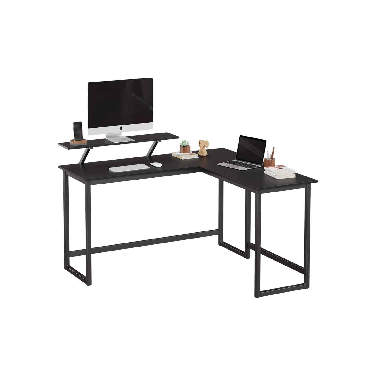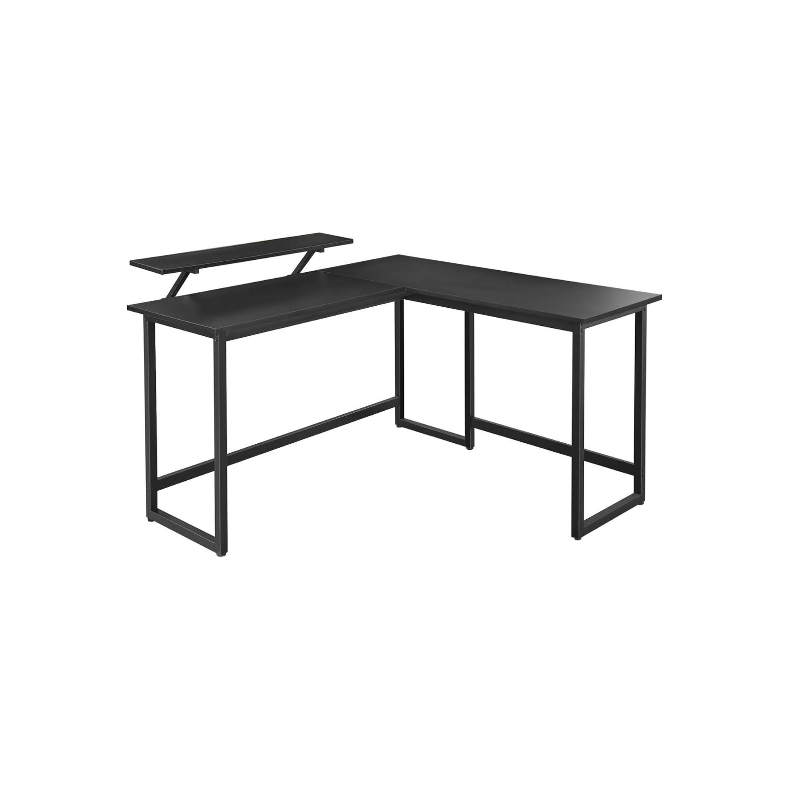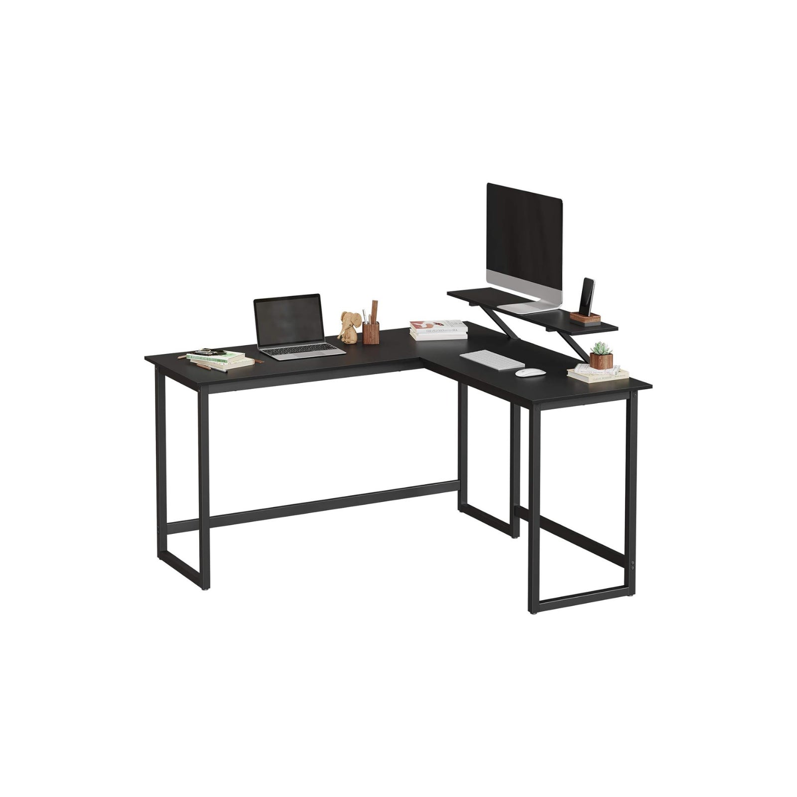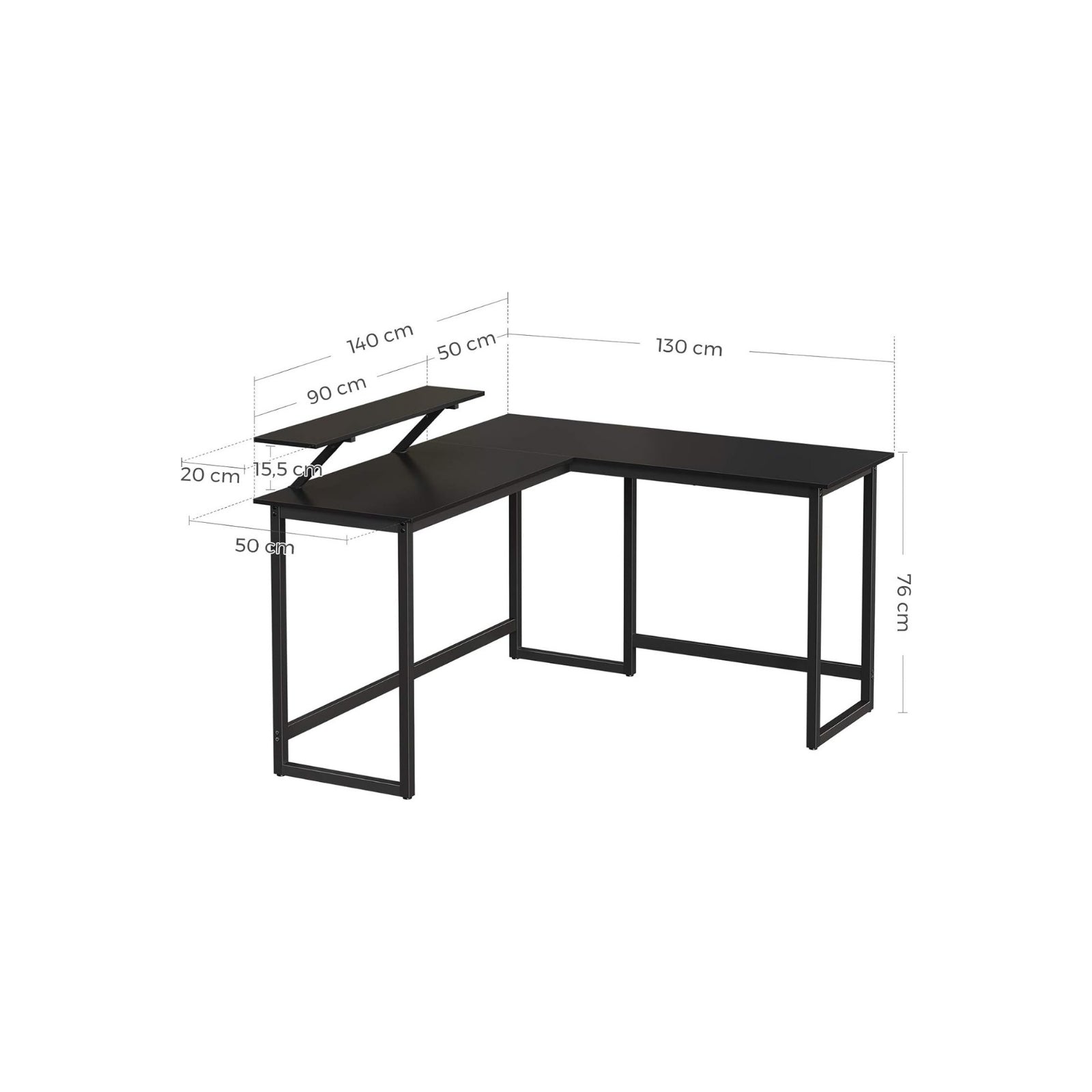 STABIEL EN VEEL OPBERGRUIMTE: Deze L-vormige computertafel combineert een stevig metalen frame met een aantrekkelijk vintage-look tafelblad. Hartstikke veel ruimte voor al je benodigdheden voor tijdens het werken of studeren. EEN EXTRA PLANK VOOR DE COMPUTER: Dit stijlvolle, vintage hoekbureau heeft niet alleen een ruimtebesparende L-vorm, het is ook uitgerust met een praktische 20 x 90 cm monitorstandaard, die eenvoudig langs de rand van het bureau kan worden verplaatst met behulp van sterschroefbevestigingen. GOED AFGEWERKT: Het ijzeren frame is bijzonder stabiel met een omtrek van 3 x 3 cm. Het vormt een solide onderconstructie voor het tafelblad, dat tot 50 kg kan worden belast. Dus zelfs als je de toetsen energiek aanraakt, wordt de stabiliteit van het meubelstuk niet aangetast.